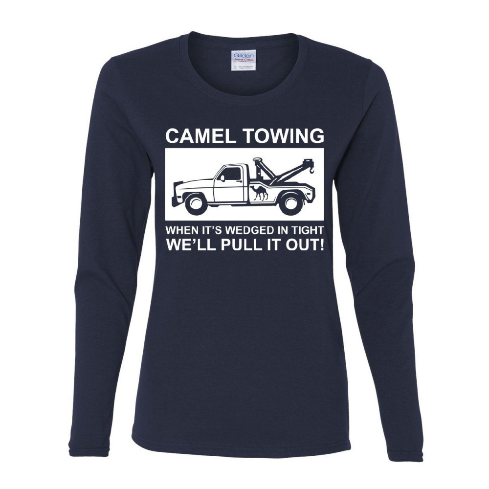 CAMEL TOWING PULL IT OUT women's long sleeve tee funny naughty adult camel toe navy blue
