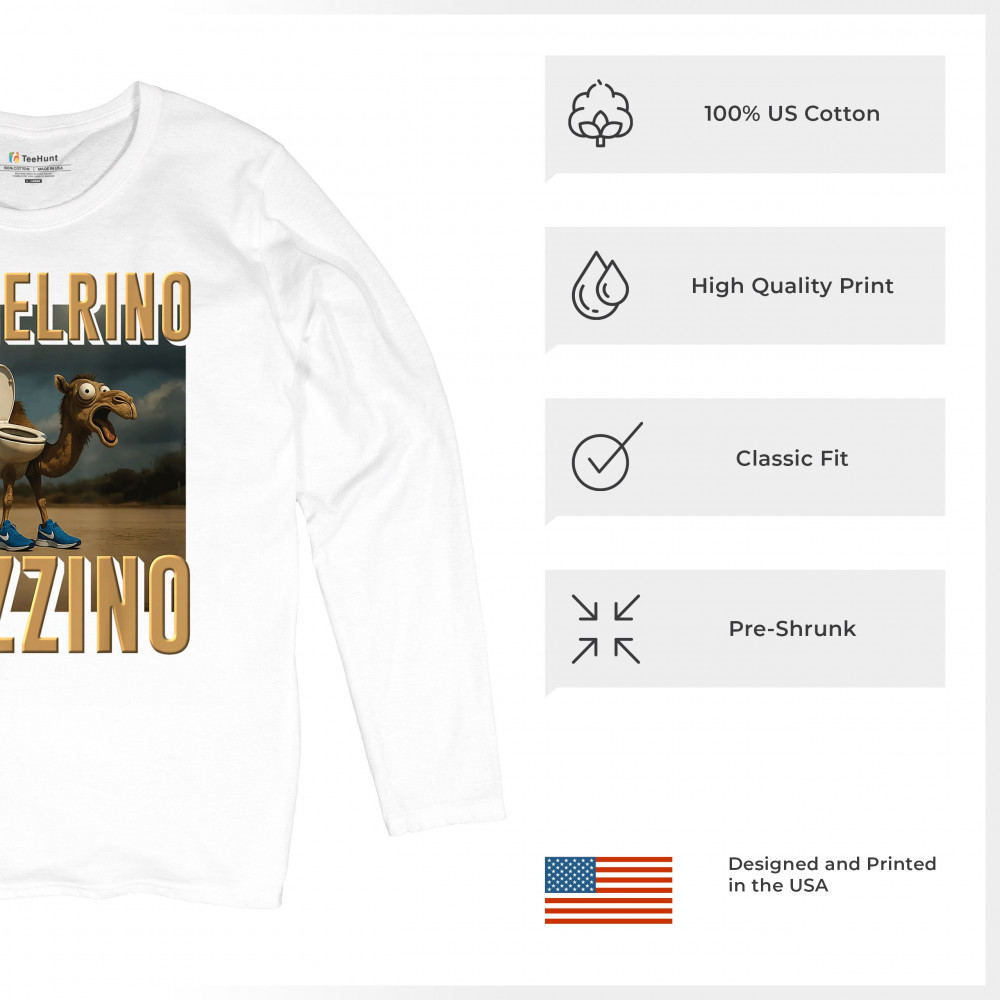 Camelrino Tazzino delivers a double flush of internet madness. With a toilet body, running shoes, and a camel's face frozen in horror, this meme mashup blends cursed-core design, viral TikTok humor, surreal animal chaos, and Gen Z meme fashion. Built for weirdcore lovers and internet irony addicts.