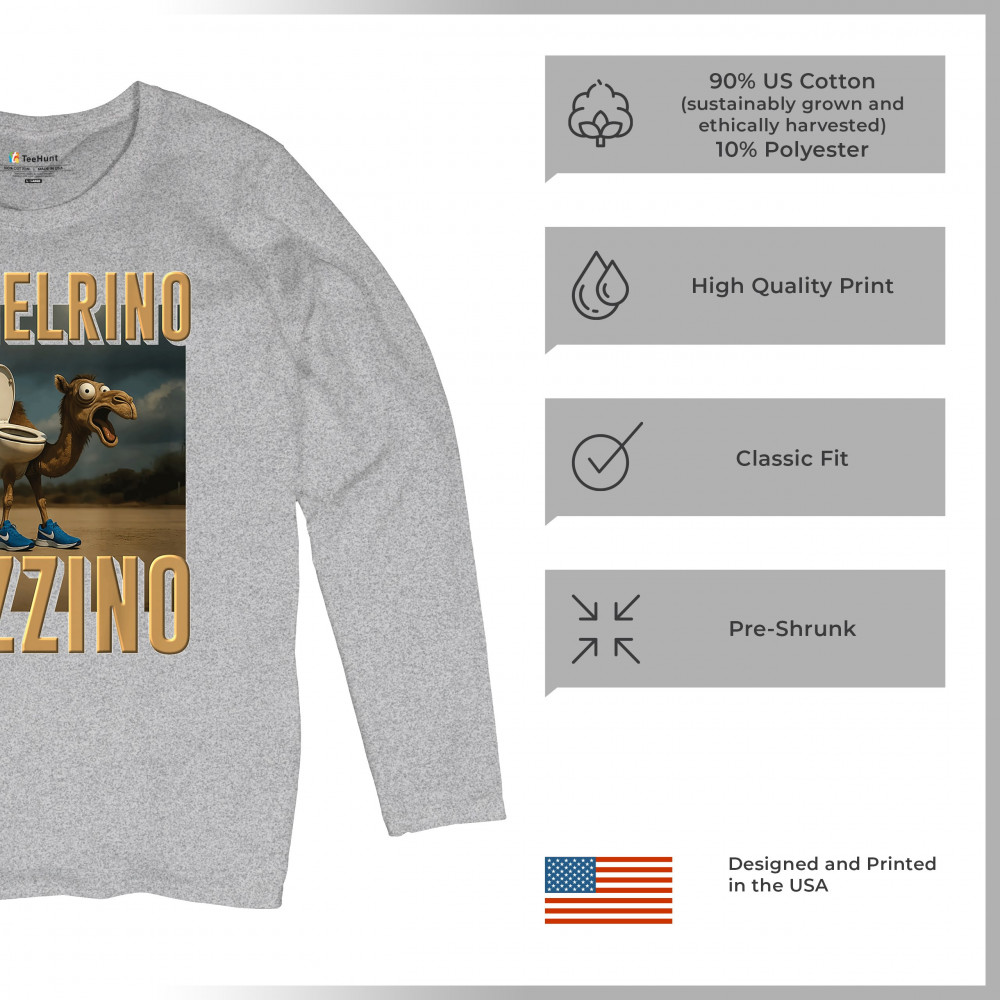 Camelrino Tazzino delivers a double flush of internet madness. With a toilet body, running shoes, and a camel's face frozen in horror, this meme mashup blends cursed-core design, viral TikTok humor, surreal animal chaos, and Gen Z meme fashion. Built for weirdcore lovers and internet irony addicts.