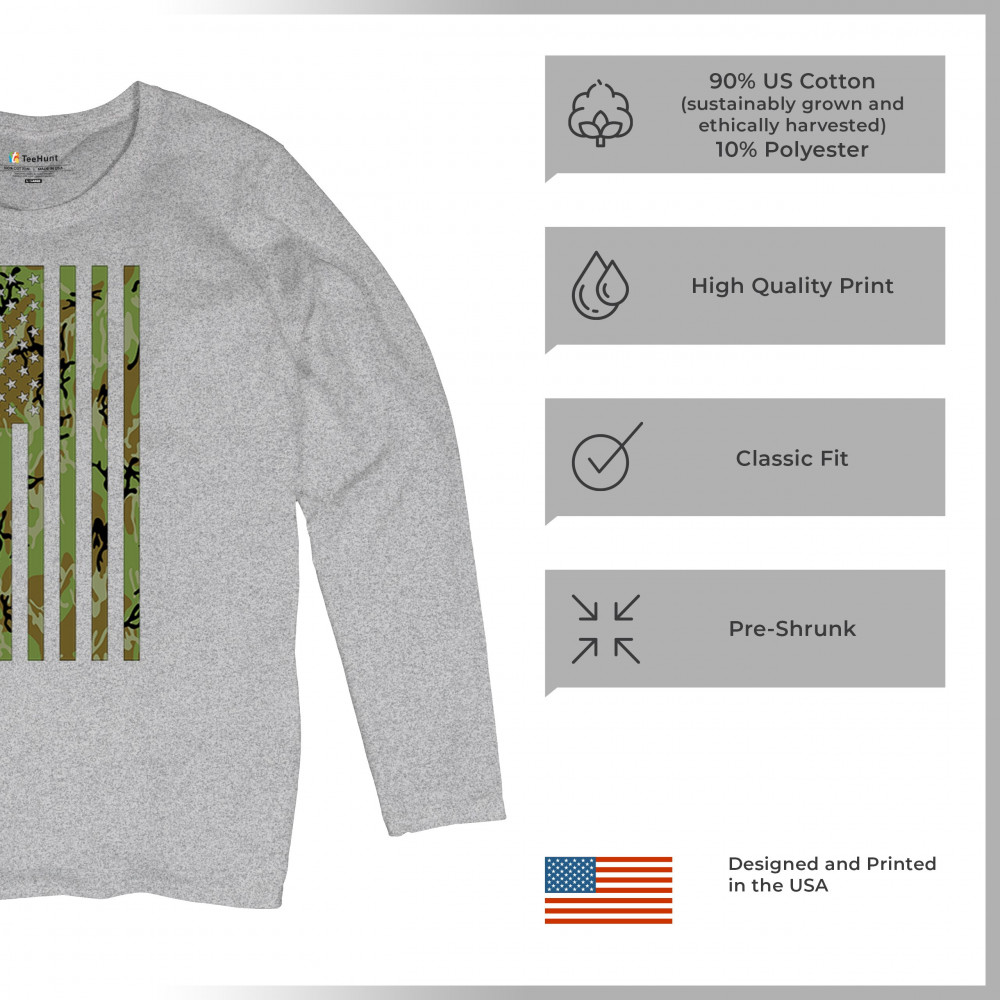 Celebrate your American pride with this bold camouflage American flag design. Perfect for veterans, active military members, and patriots who stand for freedom and honor. This design is an excellent choice for patriotic occasions such as Independence Day, Memorial Day, and Veterans Day. Show your support for the Second Amendment and the values that make America great. Wear it proudly and let your love for the USA be seen.