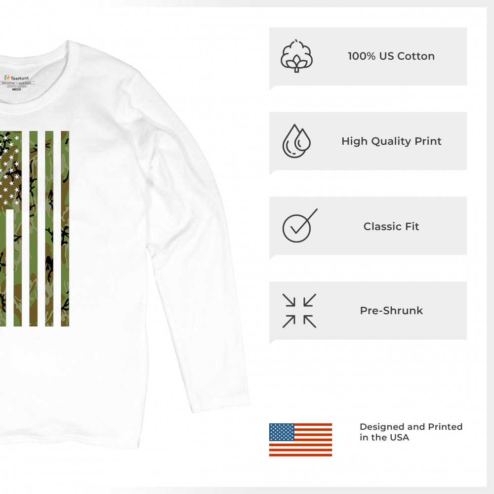 Celebrate your American pride with this bold camouflage American flag design. Perfect for veterans, active military members, and patriots who stand for freedom and honor. This design is an excellent choice for patriotic occasions such as Independence Day, Memorial Day, and Veterans Day. Show your support for the Second Amendment and the values that make America great. Wear it proudly and let your love for the USA be seen.