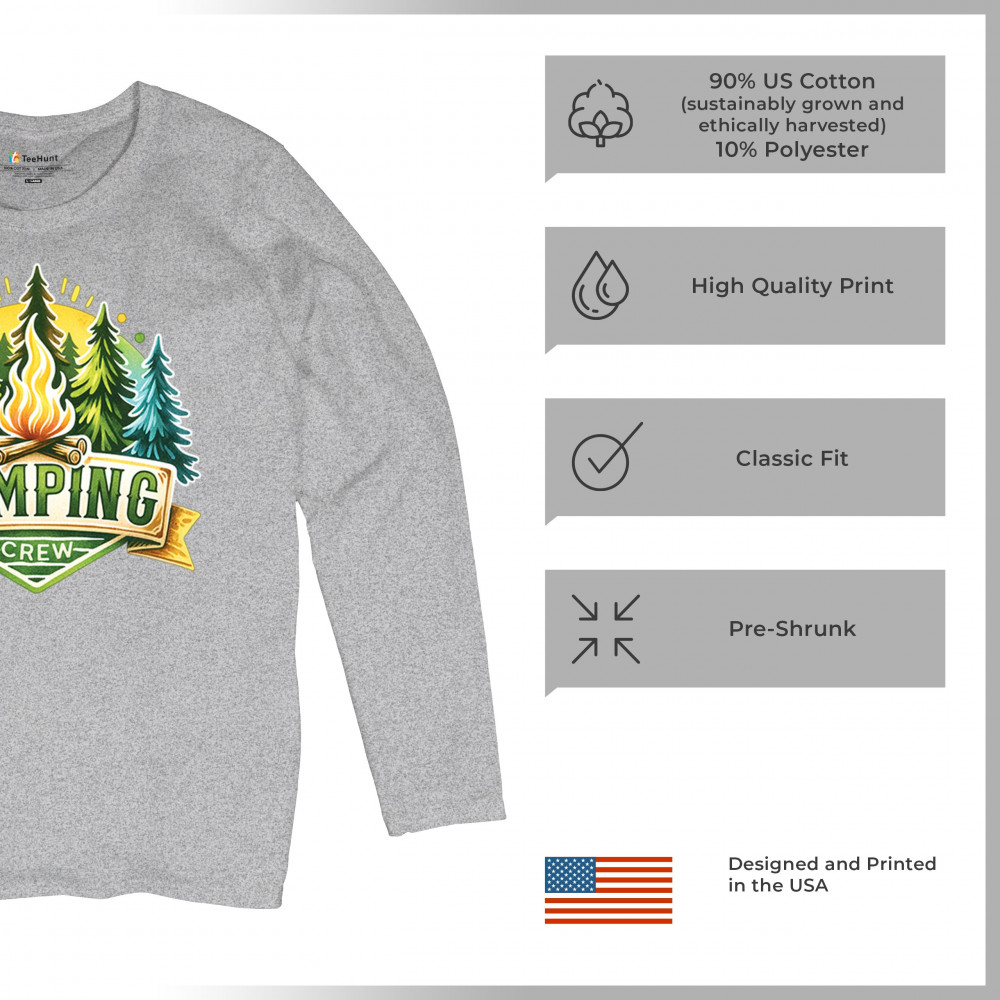 Camping Crew is made for trail lovers, glamping fans, and outdoorsmen who thrive in nature. Celebrate camping adventures, campfire moments, and wilderness vibes with this fun, cozy design. Perfect for family trips, forest escapes, and national park exploration in any season.