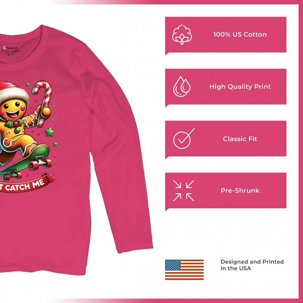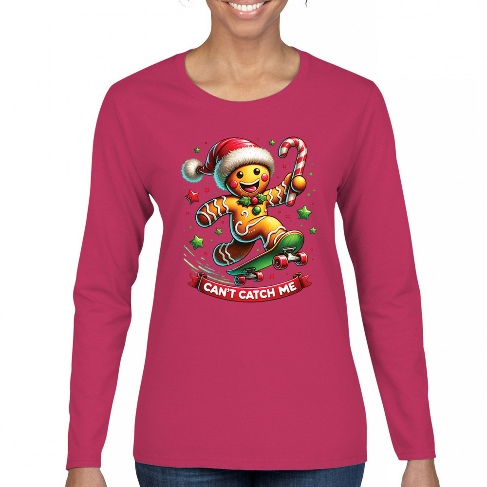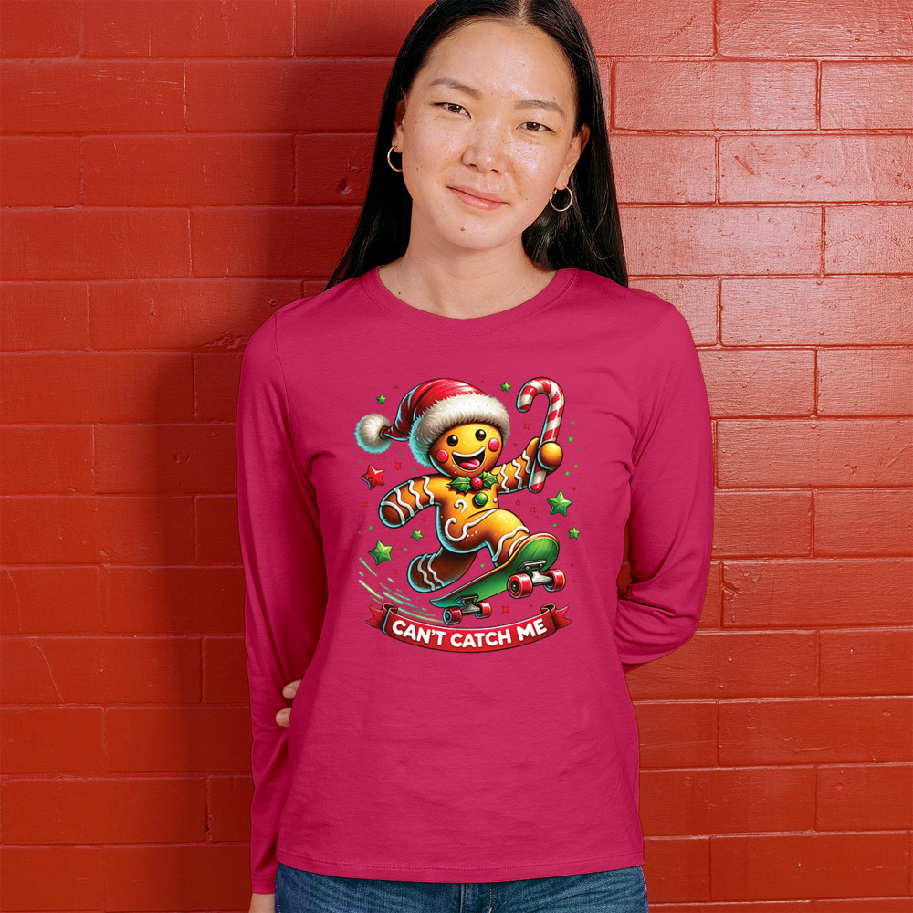 A fun Christmas design featuring a gingerbread character on a skateboard, candy cane in hand, and bright festive colors. Perfect for holiday party outfits, family gatherings, Christmas photos, festive humor fans, stocking stuffer gifting, winter celebrations, and anyone who loves playful seasonal graphics with cheerful personality.