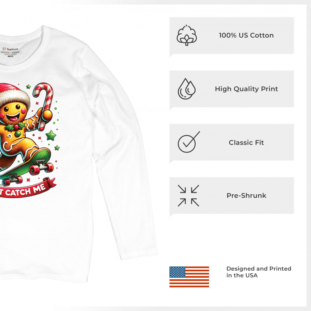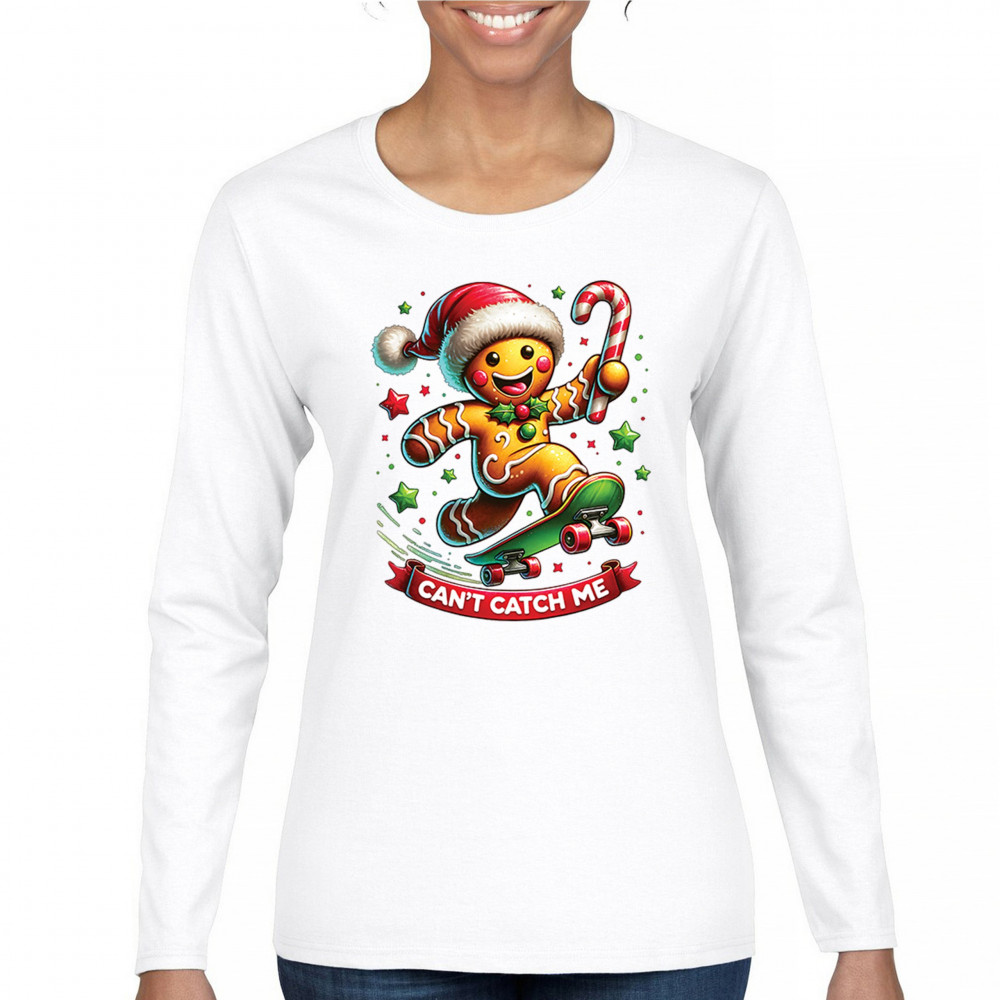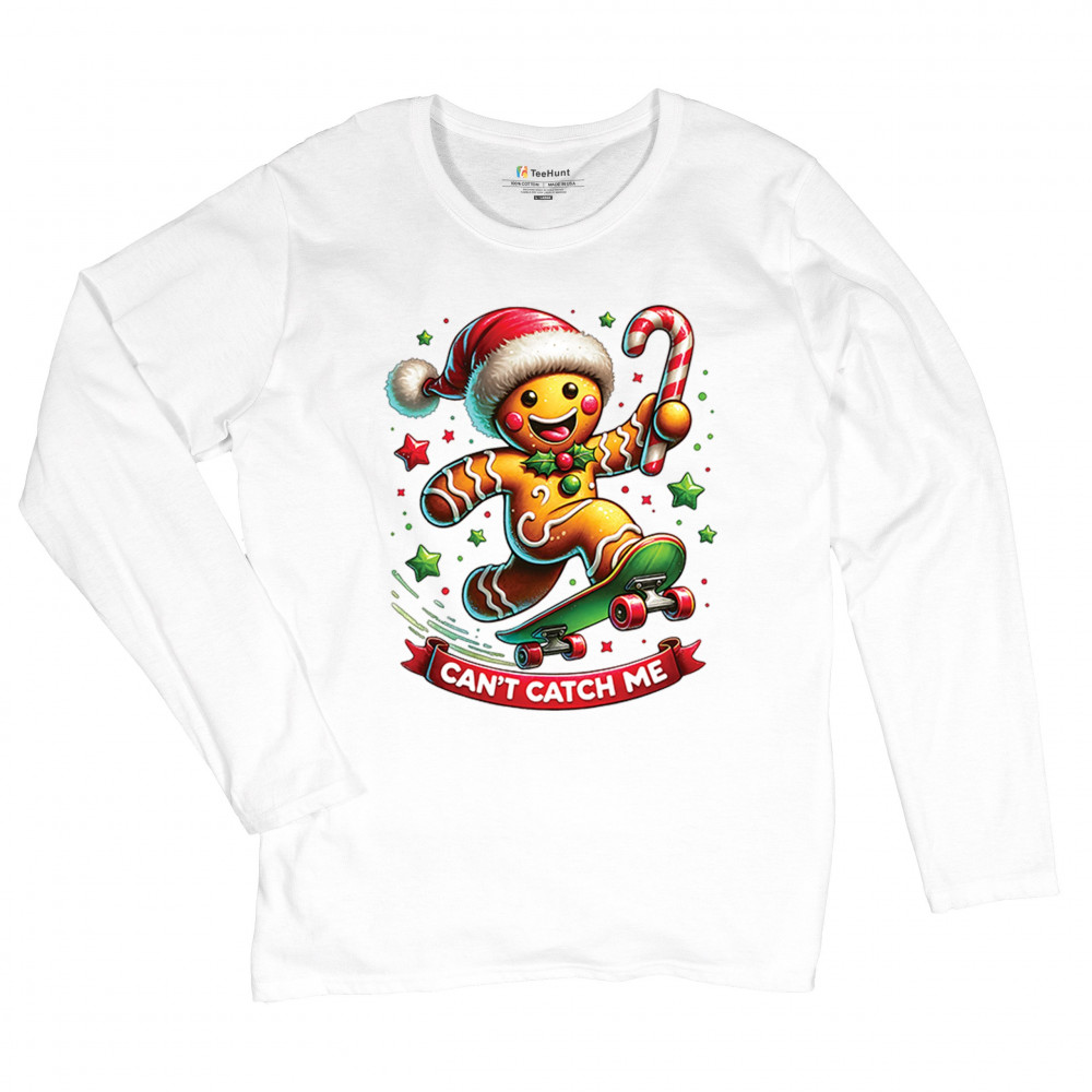 A fun Christmas design featuring a gingerbread character on a skateboard, candy cane in hand, and bright festive colors. Perfect for holiday party outfits, family gatherings, Christmas photos, festive humor fans, stocking stuffer gifting, winter celebrations, and anyone who loves playful seasonal graphics with cheerful personality.