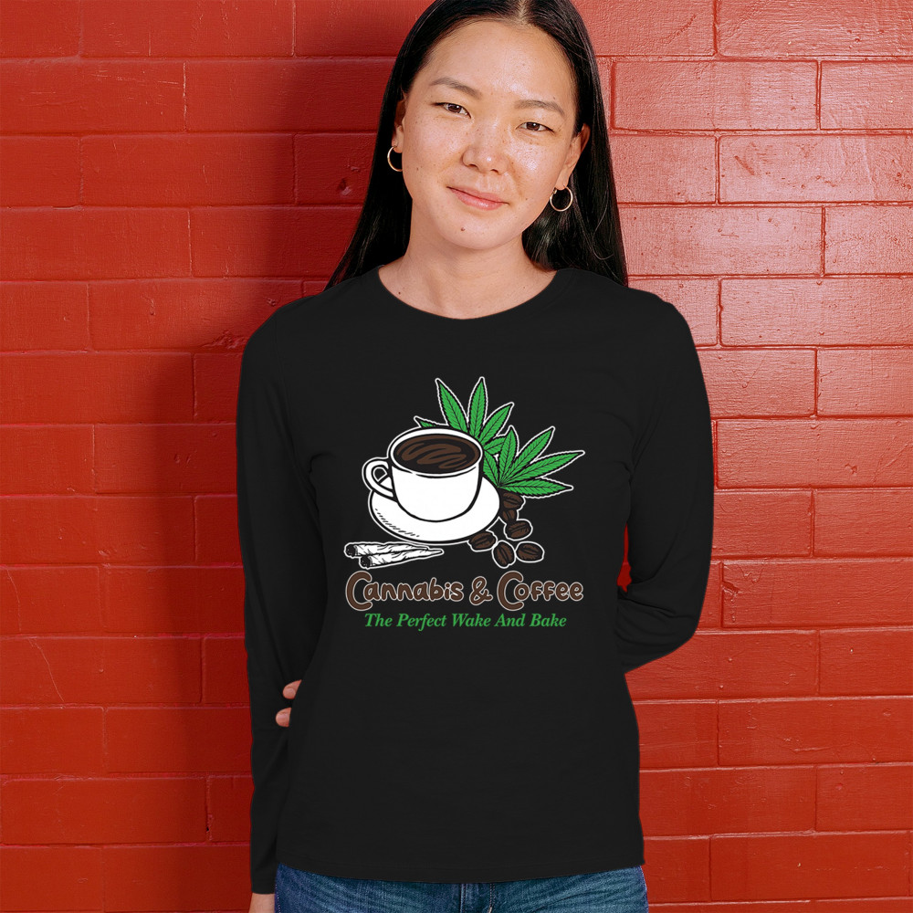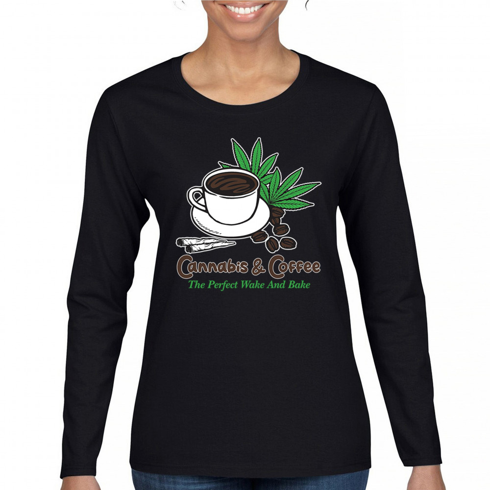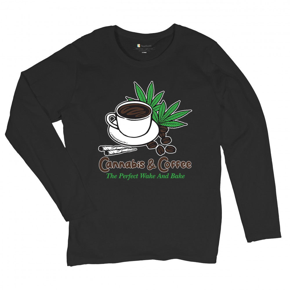 CANNABIS COFFEE women's long sleeve t-shirt weed brew 420 joint java marijuana black
