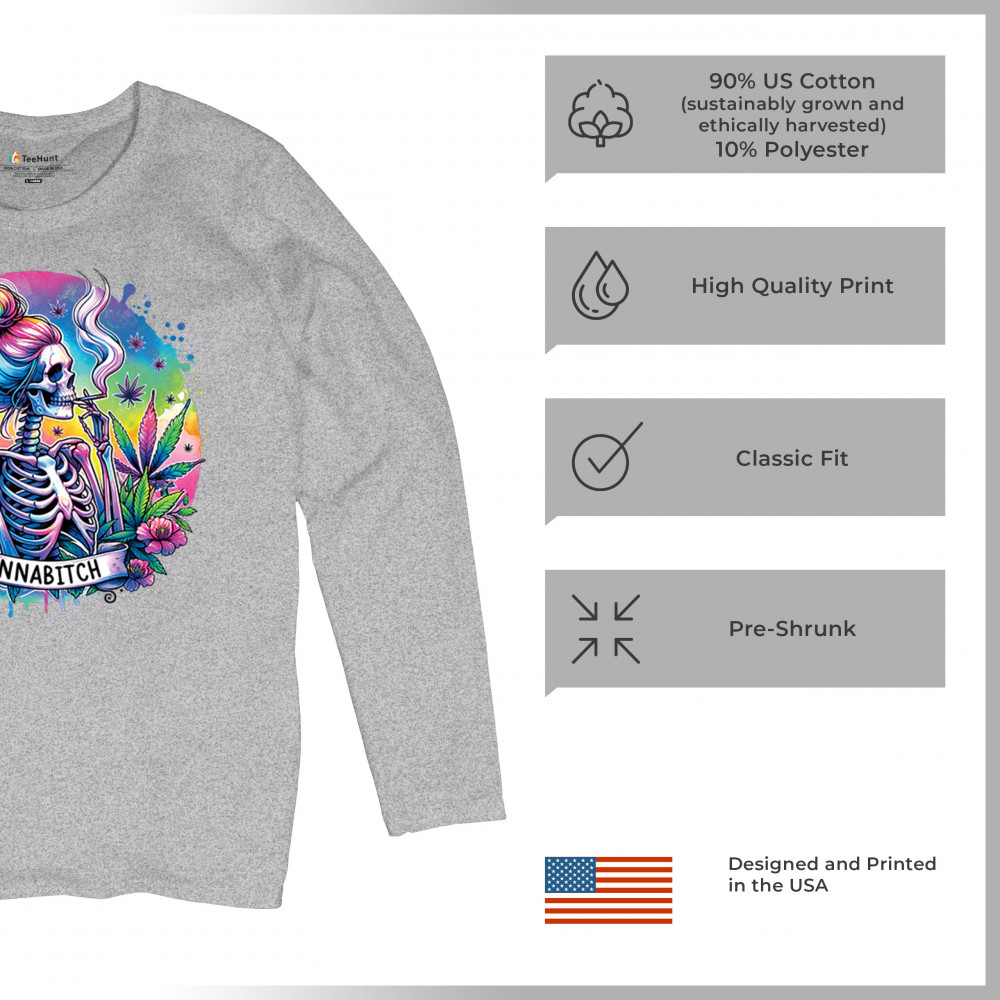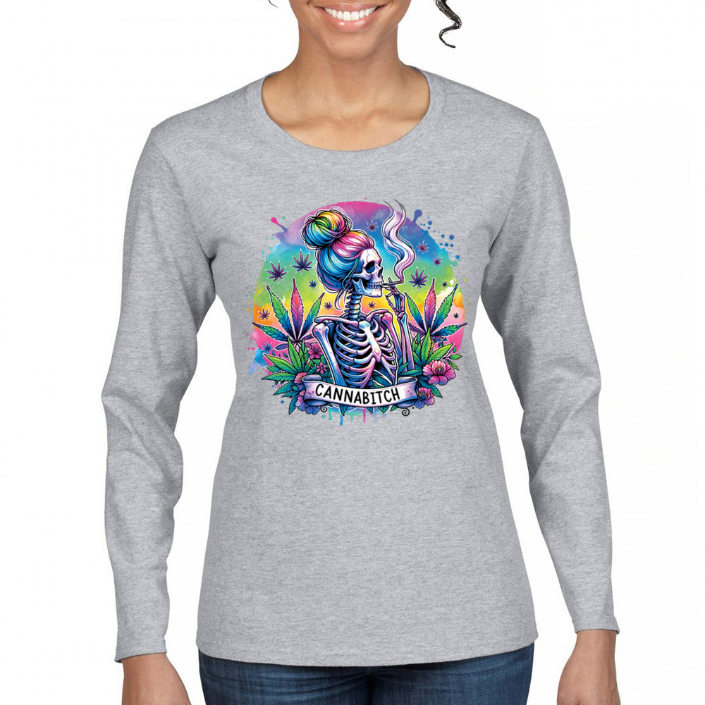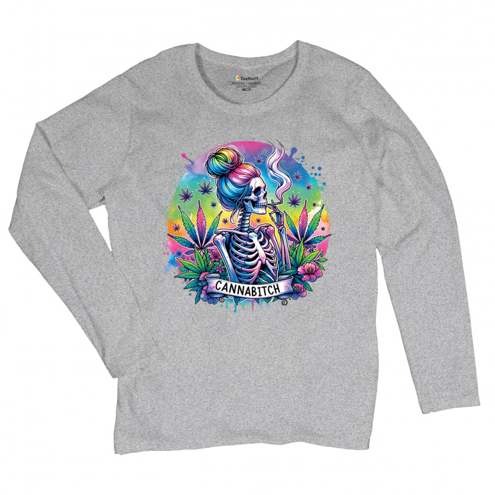 Unleash your inner weed queen with this CANNABITCH design—a psychedelic rainbow skeleton with major stoner girl energy. Dripping in neon colors, bold bud leaves, and fierce feminine vibes, it's a head-turning graphic for cannabis culture lovers, party girls, and unapologetically high women.