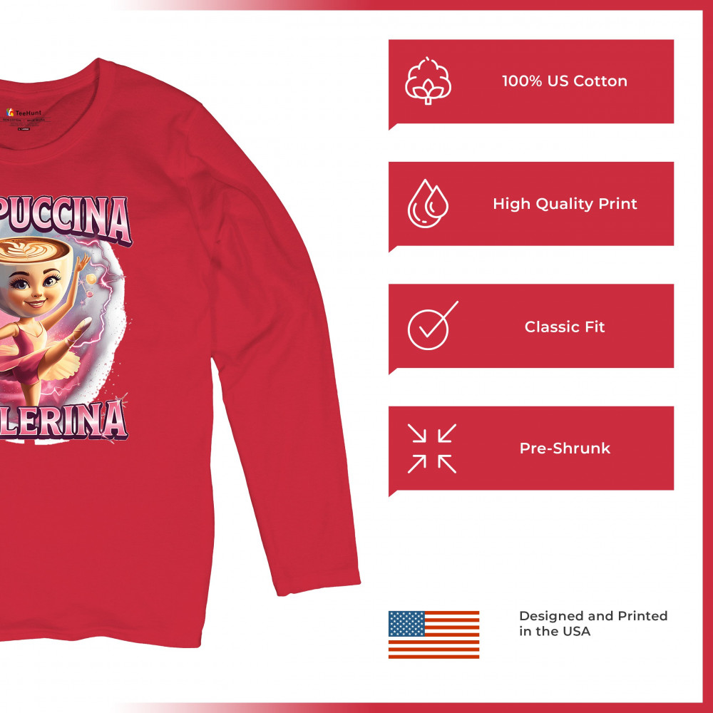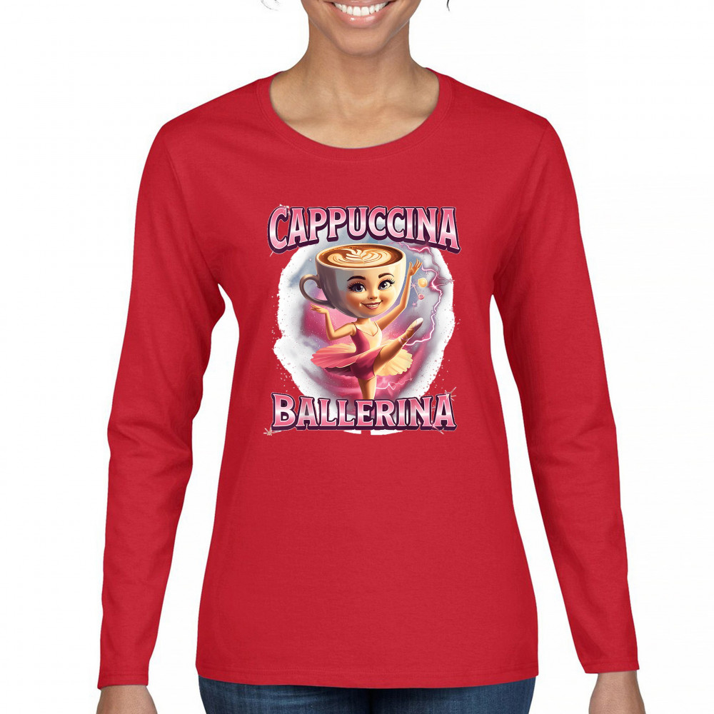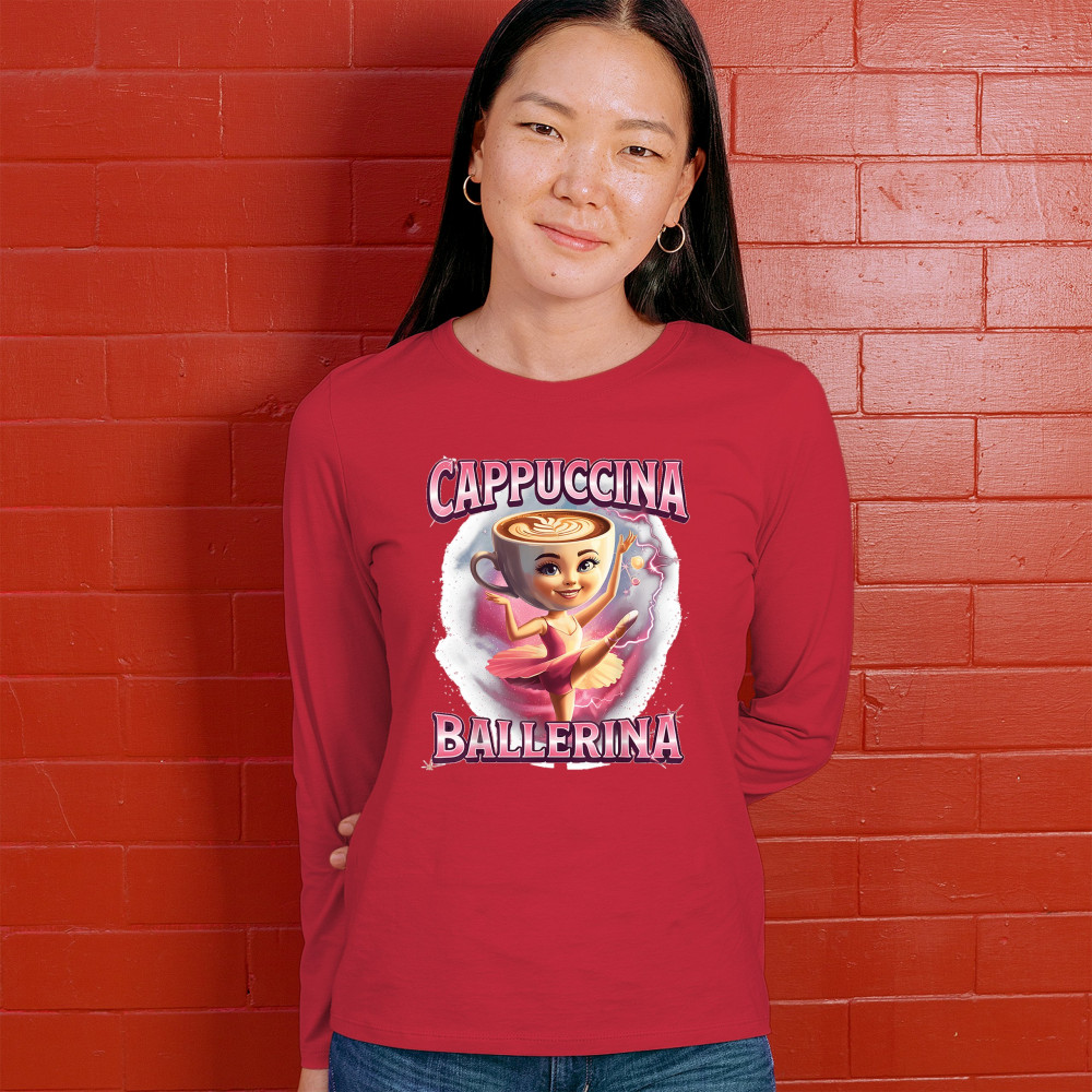 Cappuccina Ballerina is your perfect mix of meme chaos and coffee-core fashion. This absurd design features a ballet-dancing cappuccino head with weirdcore flair and Gen Z humor. A surreal blend of ironic internet fashion, TikTok trends, and espresso madness—ideal for meme lovers, caffeine addicts, and viral absurdists alike.