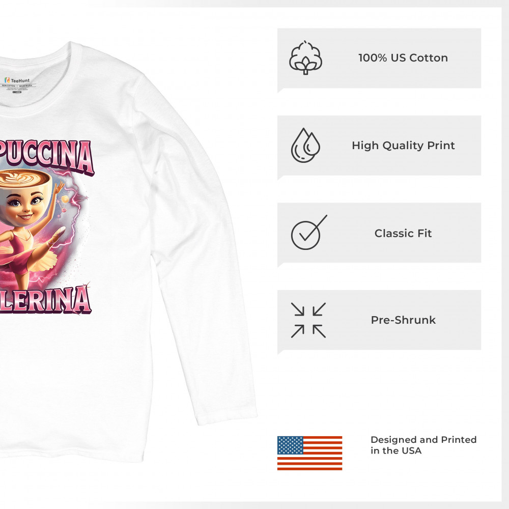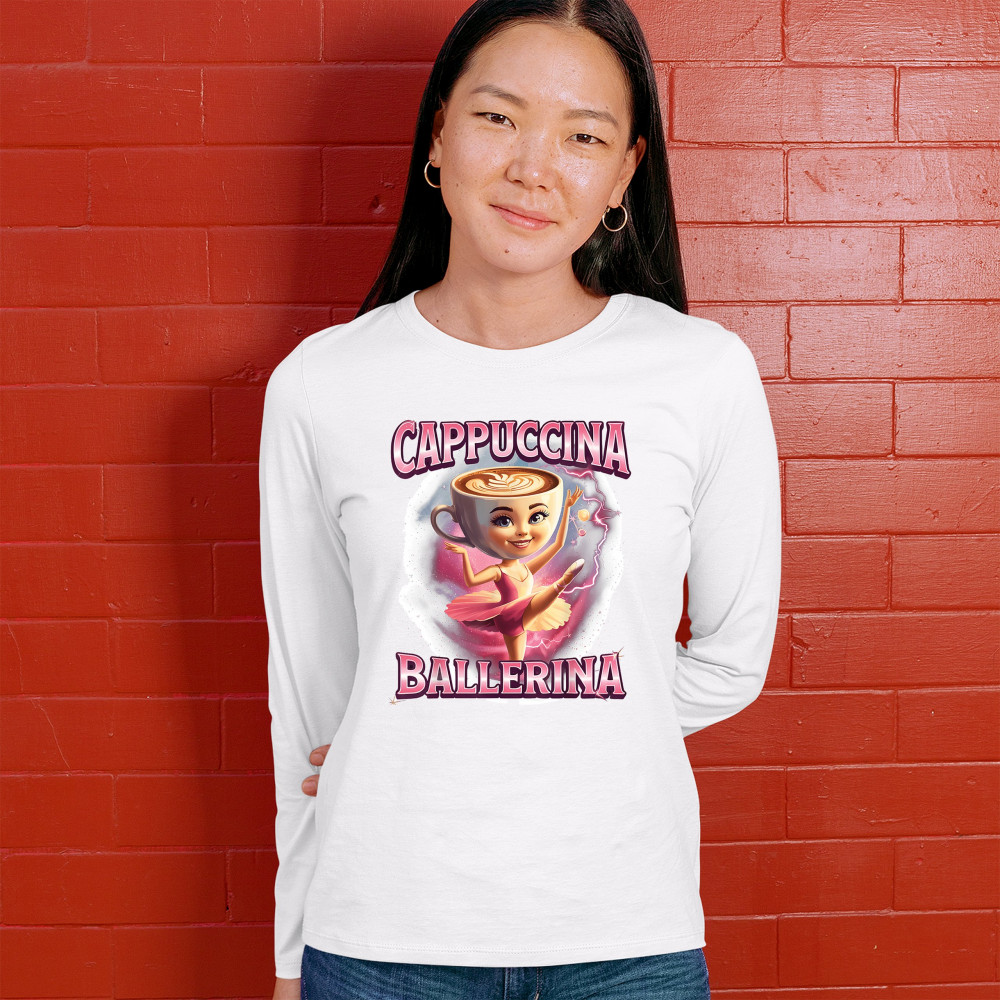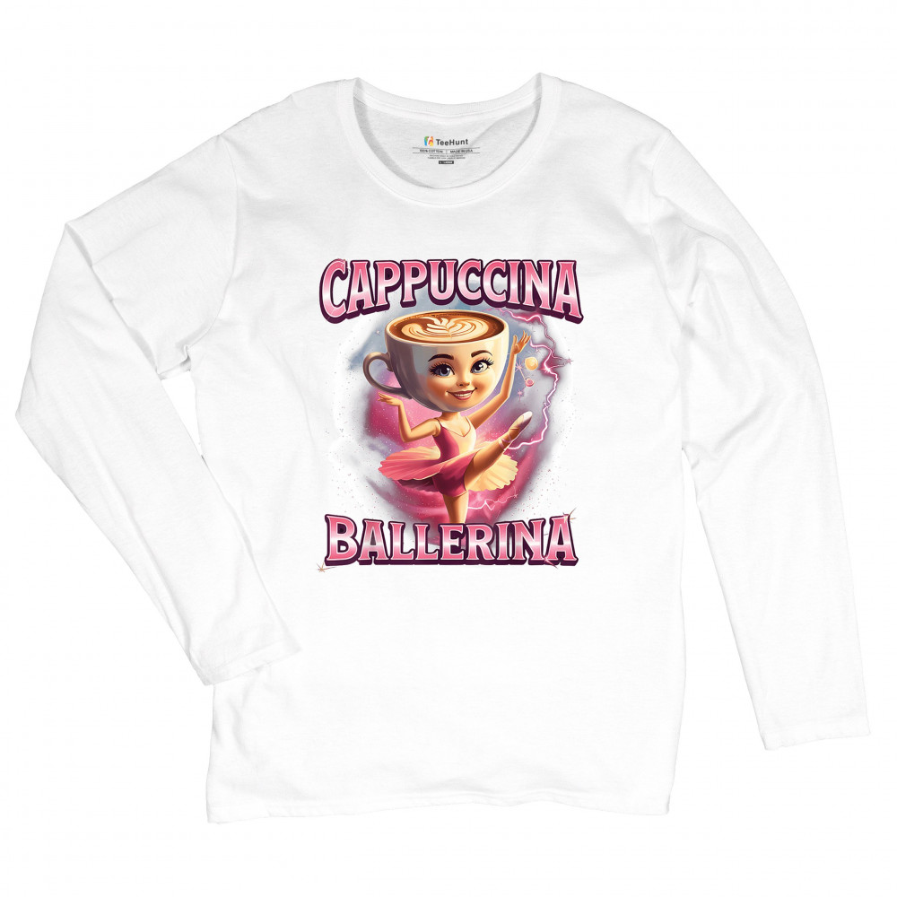 Cappuccina Ballerina is your perfect mix of meme chaos and coffee-core fashion. This absurd design features a ballet-dancing cappuccino head with weirdcore flair and Gen Z humor. A surreal blend of ironic internet fashion, TikTok trends, and espresso madness—ideal for meme lovers, caffeine addicts, and viral absurdists alike.