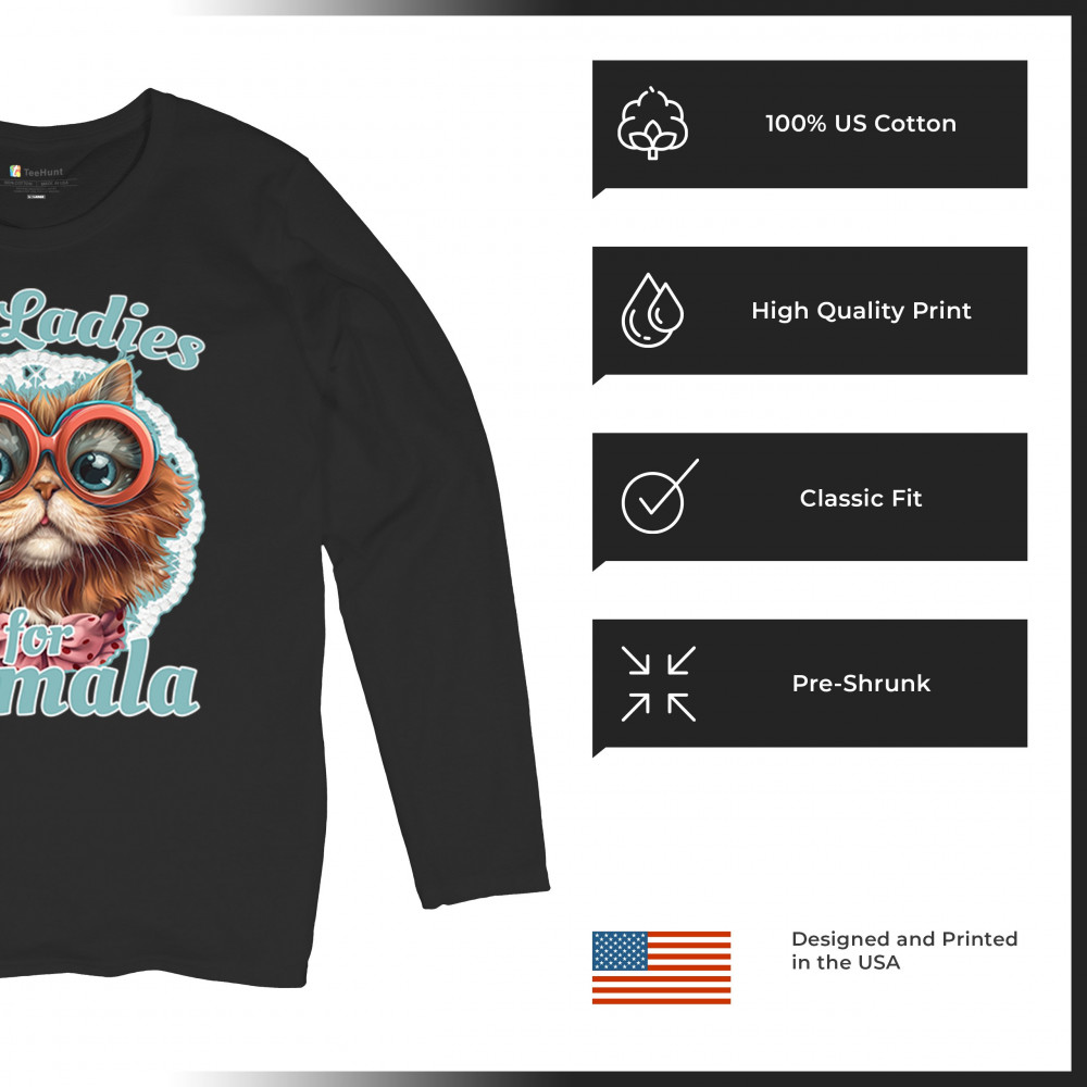 Express your love for both cats and Kamala Harris with our "Cat Ladies for Kamala" design. This stylish and playful piece is perfect for those who align with progressive values, advocating for women’s rights, LGBTQ+ issues, and compassionate leadership. Wear it proudly at rallies, events, or anywhere you want to make a statement. Join the movement to support Kamala Harris in 2024 and showcase your dedication to a brighter future.
