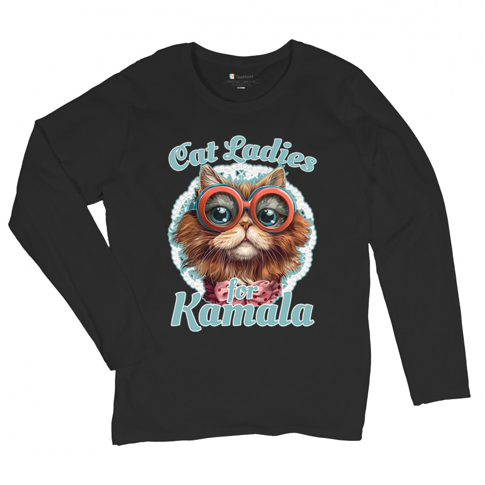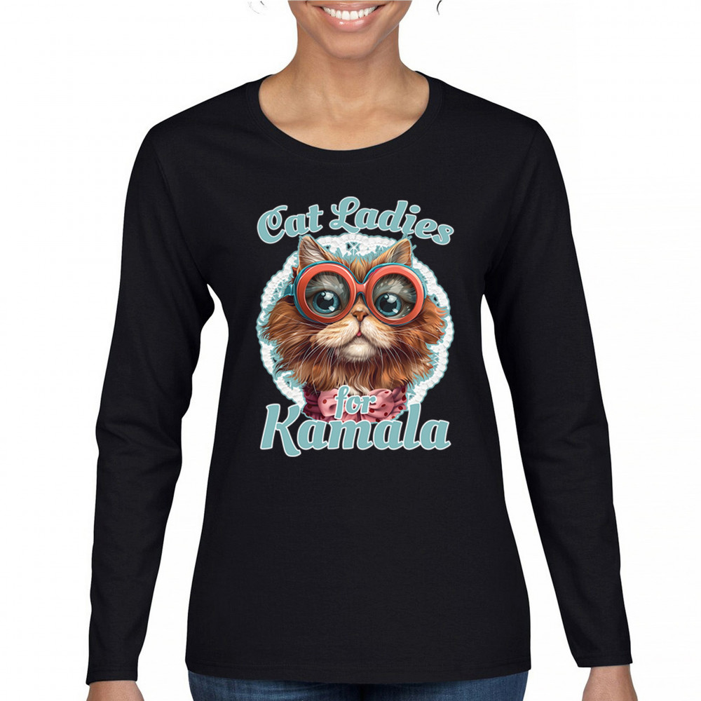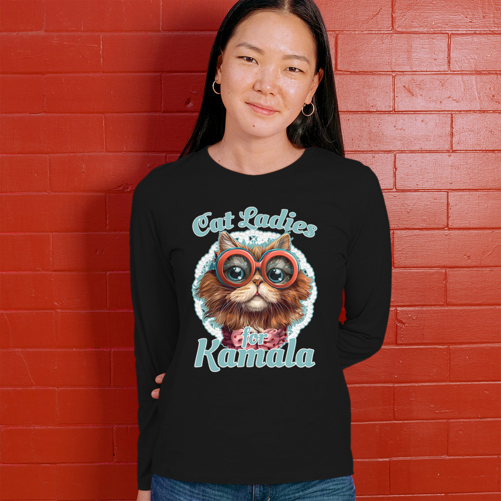 CAT LADIES FOR KAMALA 2024 women's long sleeve t-shirt harris i'm speaking 47 black