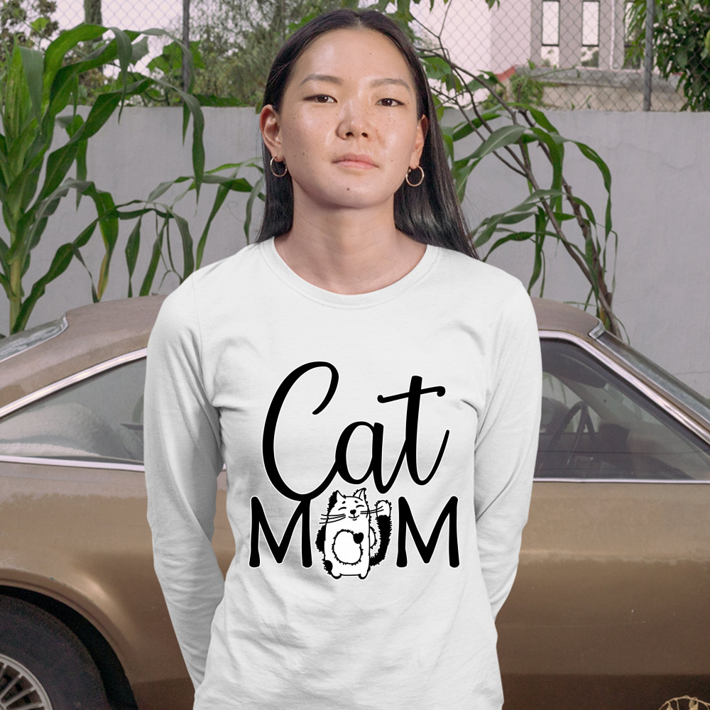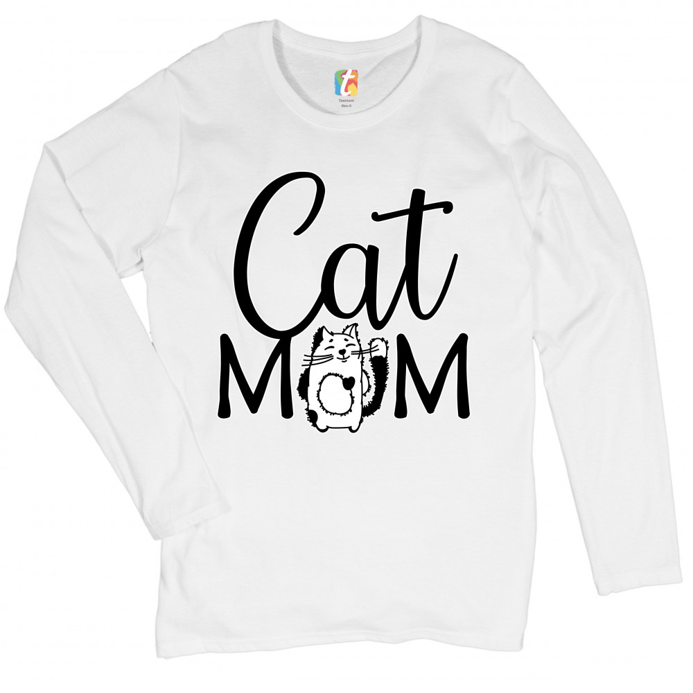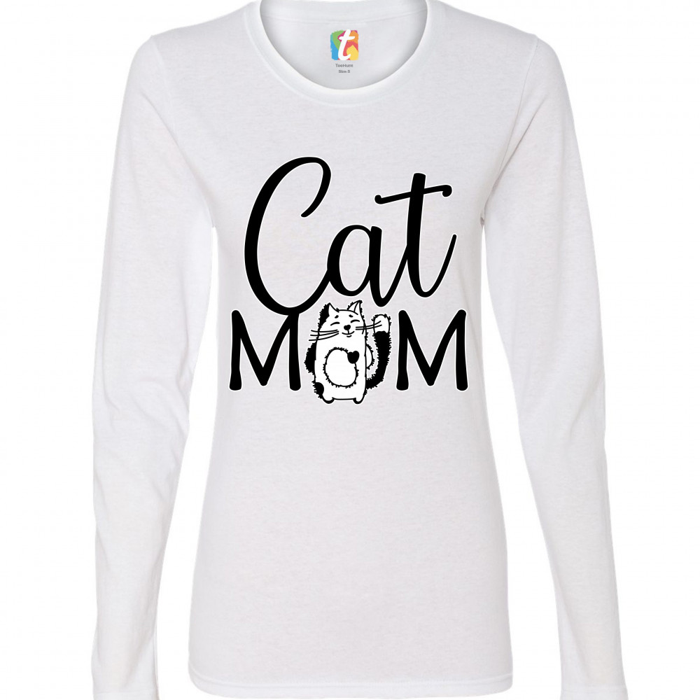 CAT MOM women's long sleeve t-shirt mother's day fur mama cat lover kitty white