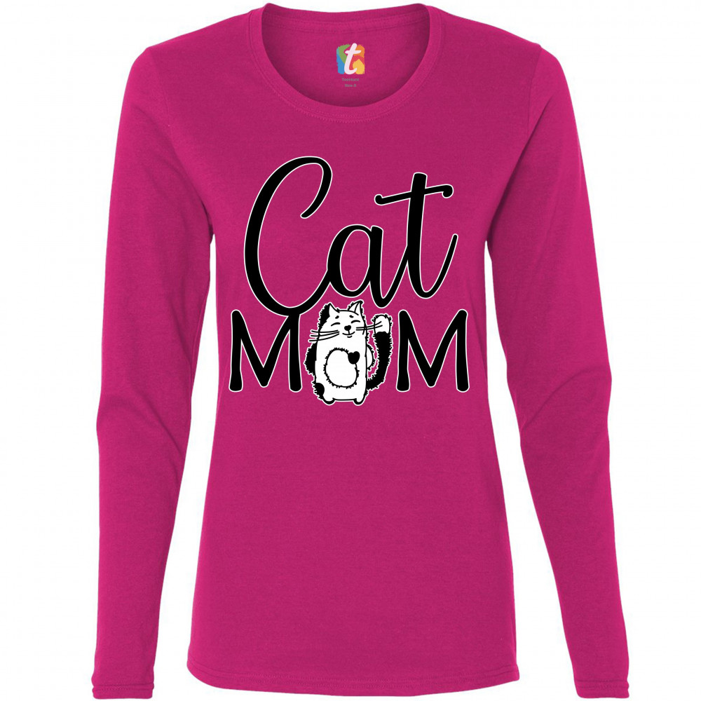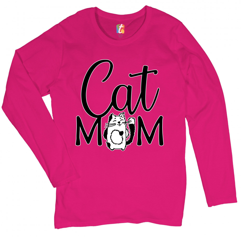CAT MOM women's long sleeve t-shirt mother's day fur mama cat lover kitty pink