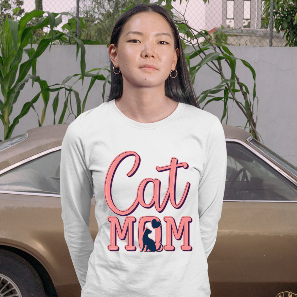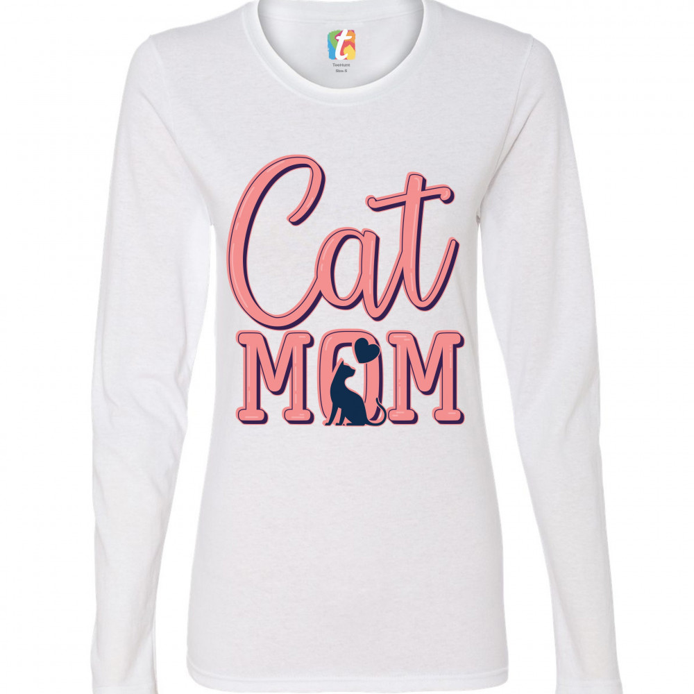 CAT MOM women's long sleeve t-shirt mother's day i love my my pet lover white