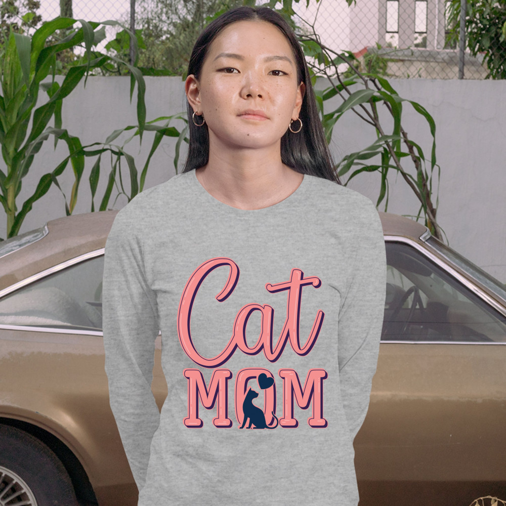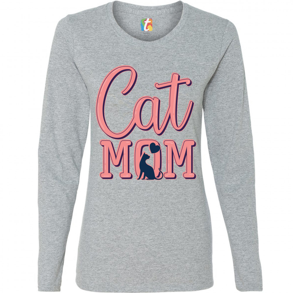 CAT MOM women's long sleeve t-shirt mother's day i love my my pet lover gray