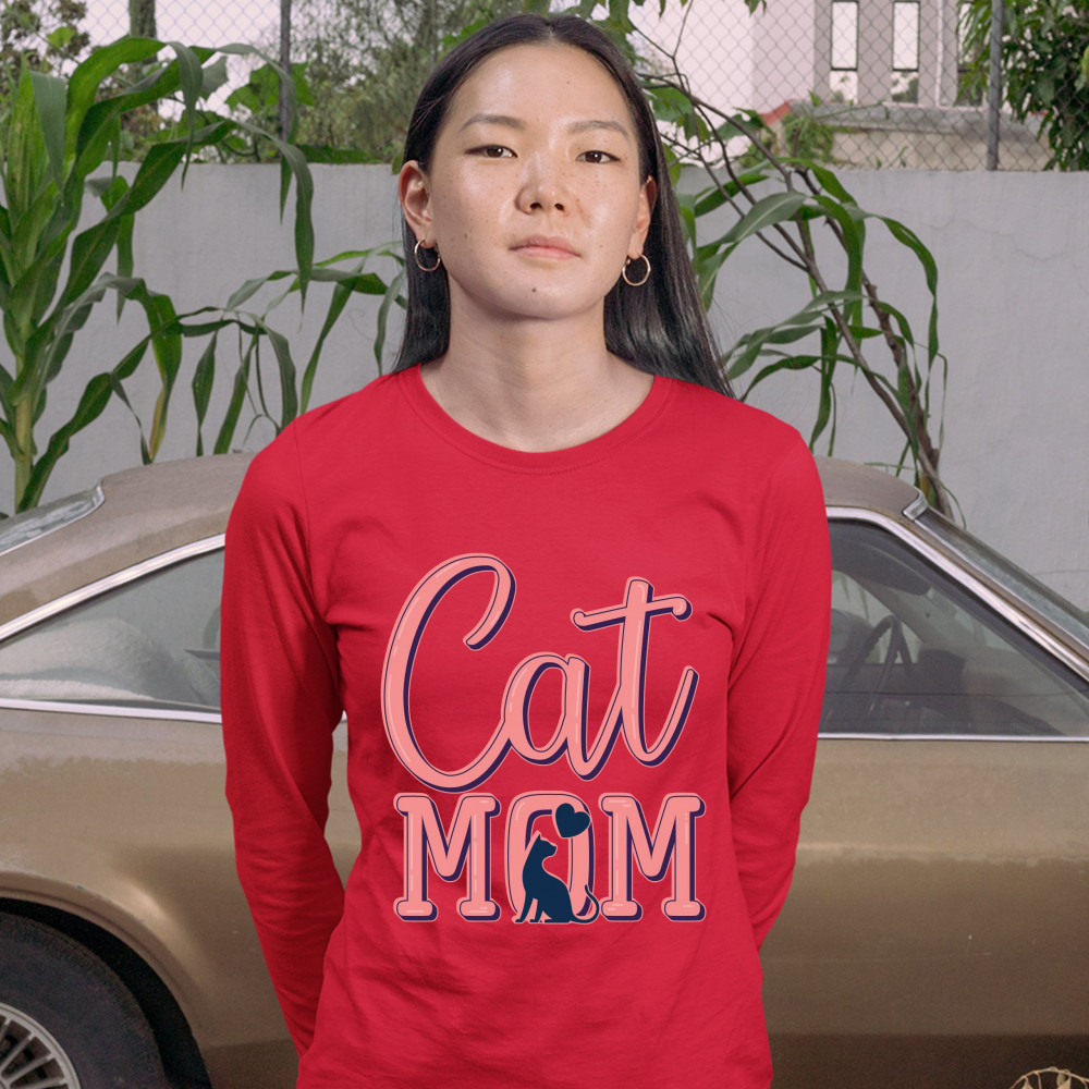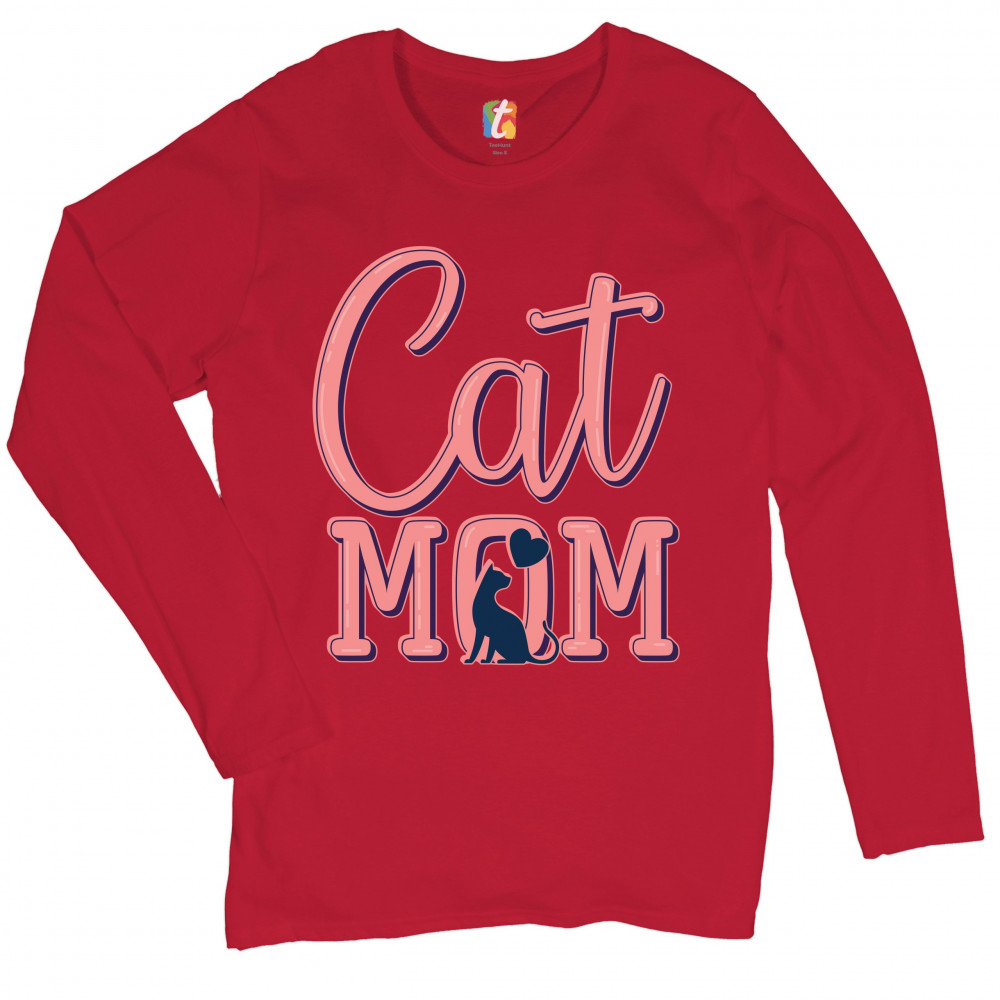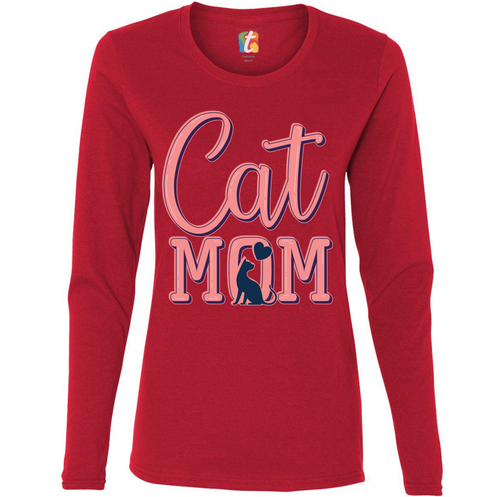CAT MOM women's long sleeve t-shirt mother's day i love my my pet lover red