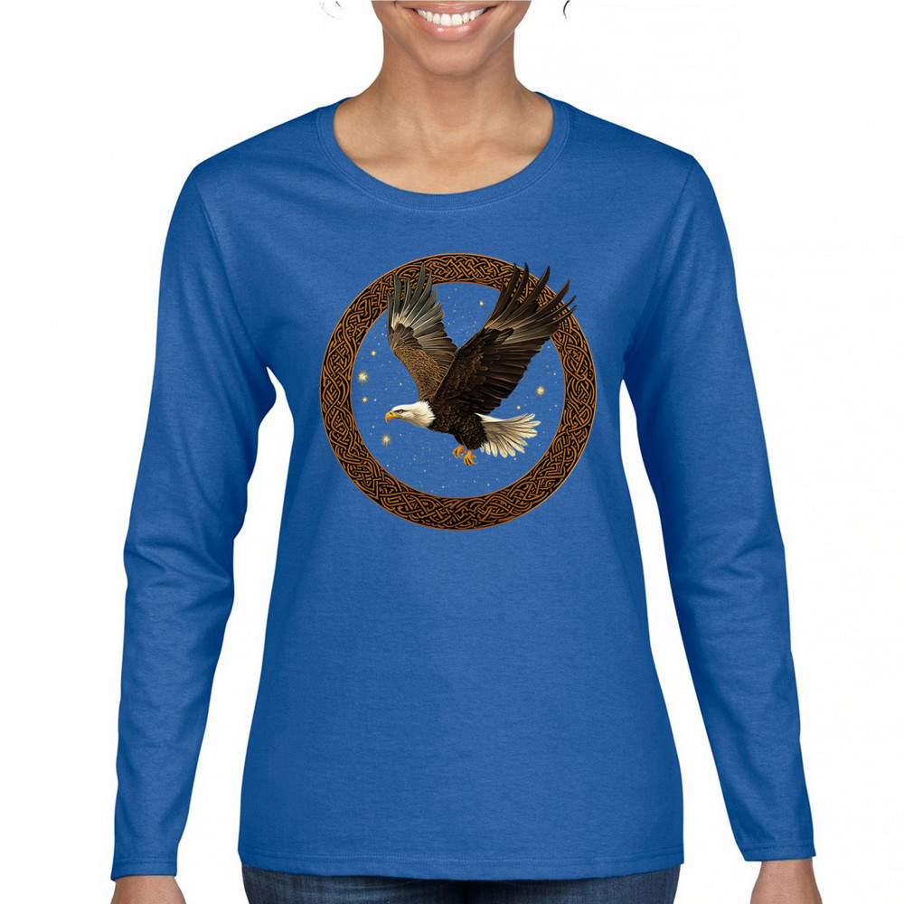 Bald eagle flying in Celtic circle with stars. A bold symbol of freedom, spiritual power, and protection—perfect for patriots and seekers.