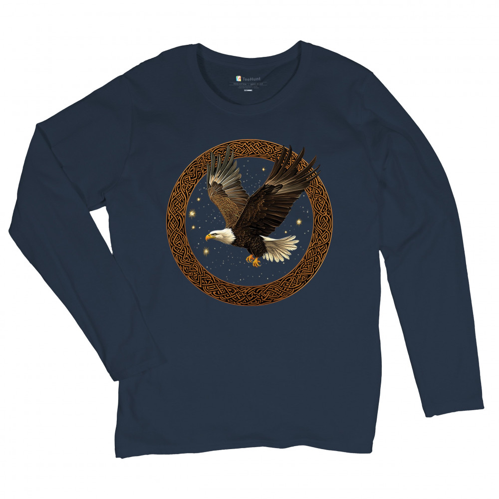 This powerful bald eagle takes flight within a Celtic knotwork circle, radiating strength, independence, and cosmic energy. The glowing stars and celestial background add mystic symbolism, blending nature, tribal design, and spirituality. Perfect for patriots, spiritual seekers, and bird enthusiasts.