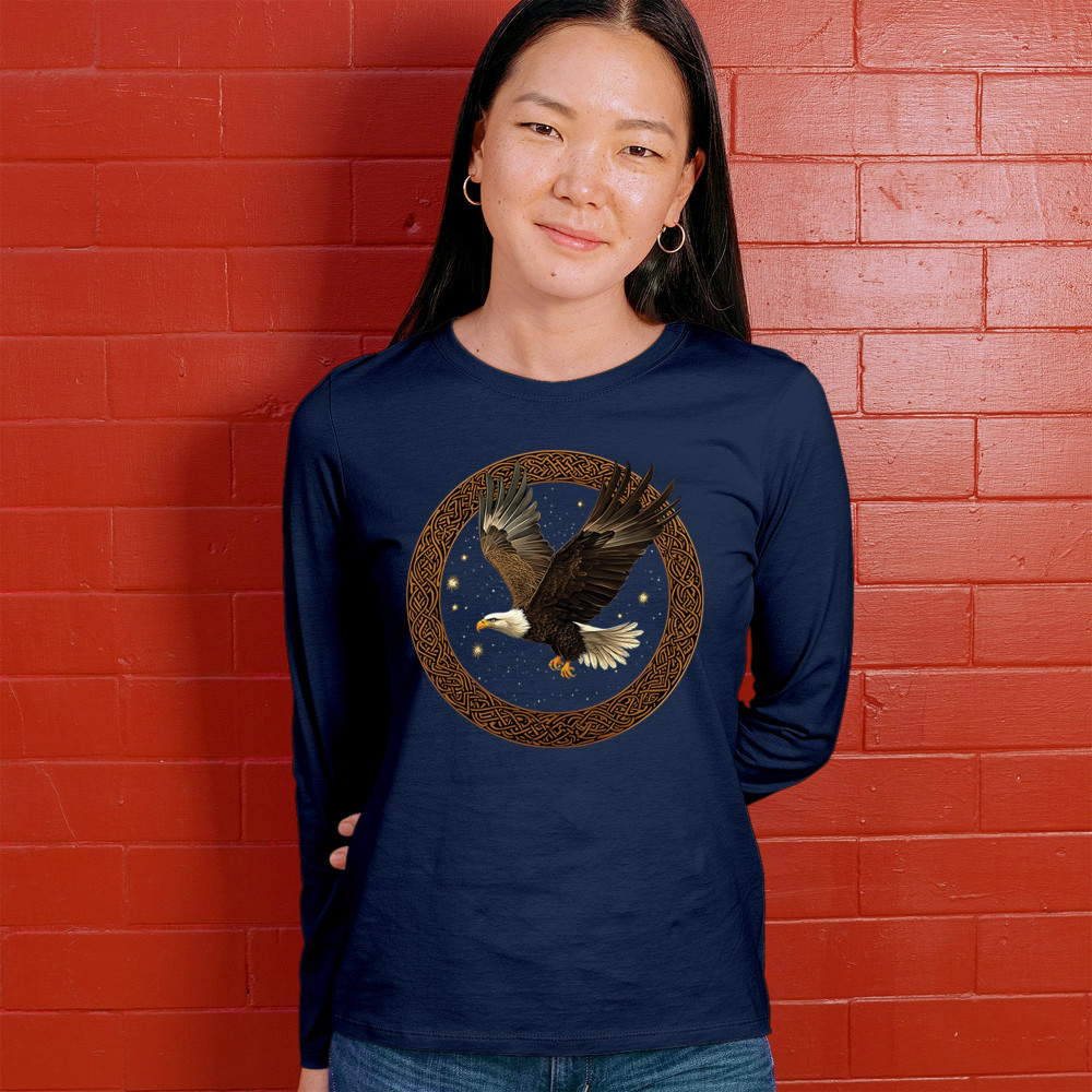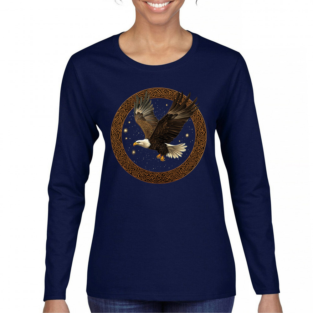 Bald eagle flying in Celtic circle with stars. A bold symbol of freedom, spiritual power, and protection—perfect for patriots and seekers.