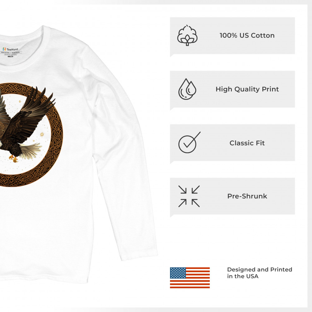 This powerful bald eagle takes flight within a Celtic knotwork circle, radiating strength, independence, and cosmic energy. The glowing stars and celestial background add mystic symbolism, blending nature, tribal design, and spirituality. Perfect for patriots, spiritual seekers, and bird enthusiasts.