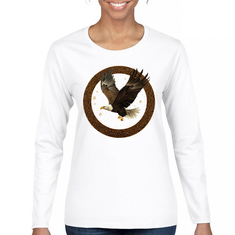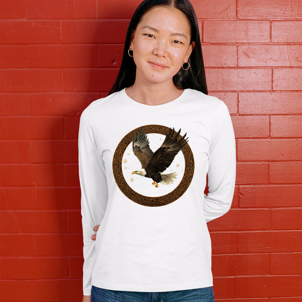 Bald eagle flying in Celtic circle with stars. A bold symbol of freedom, spiritual power, and protection—perfect for patriots and seekers.