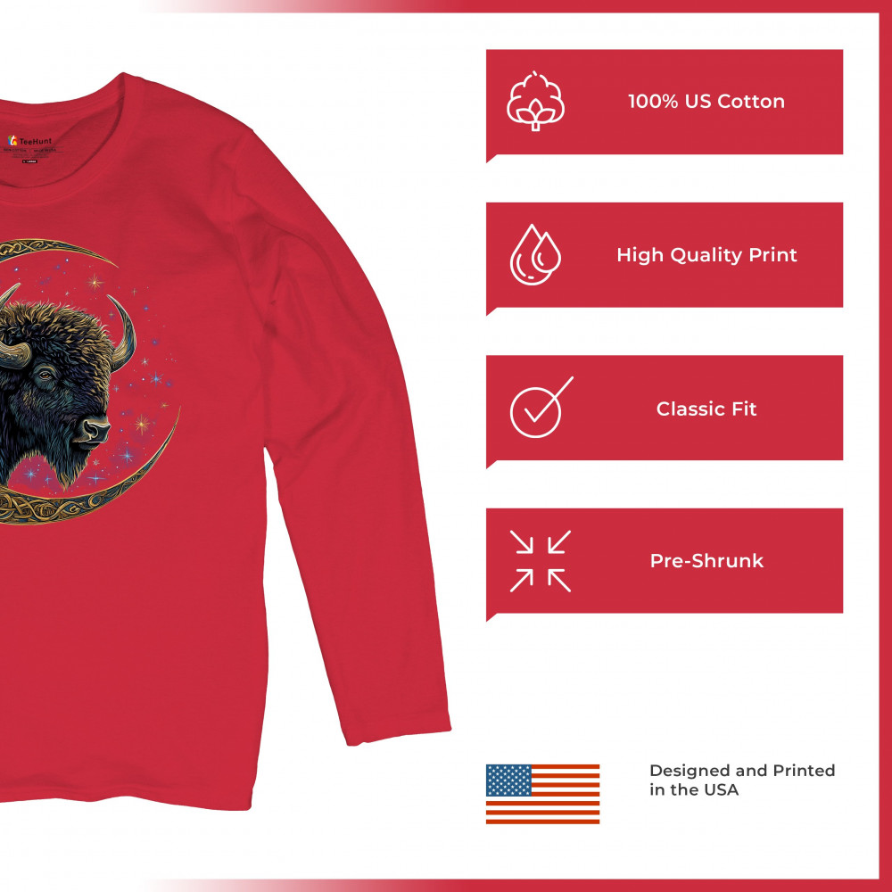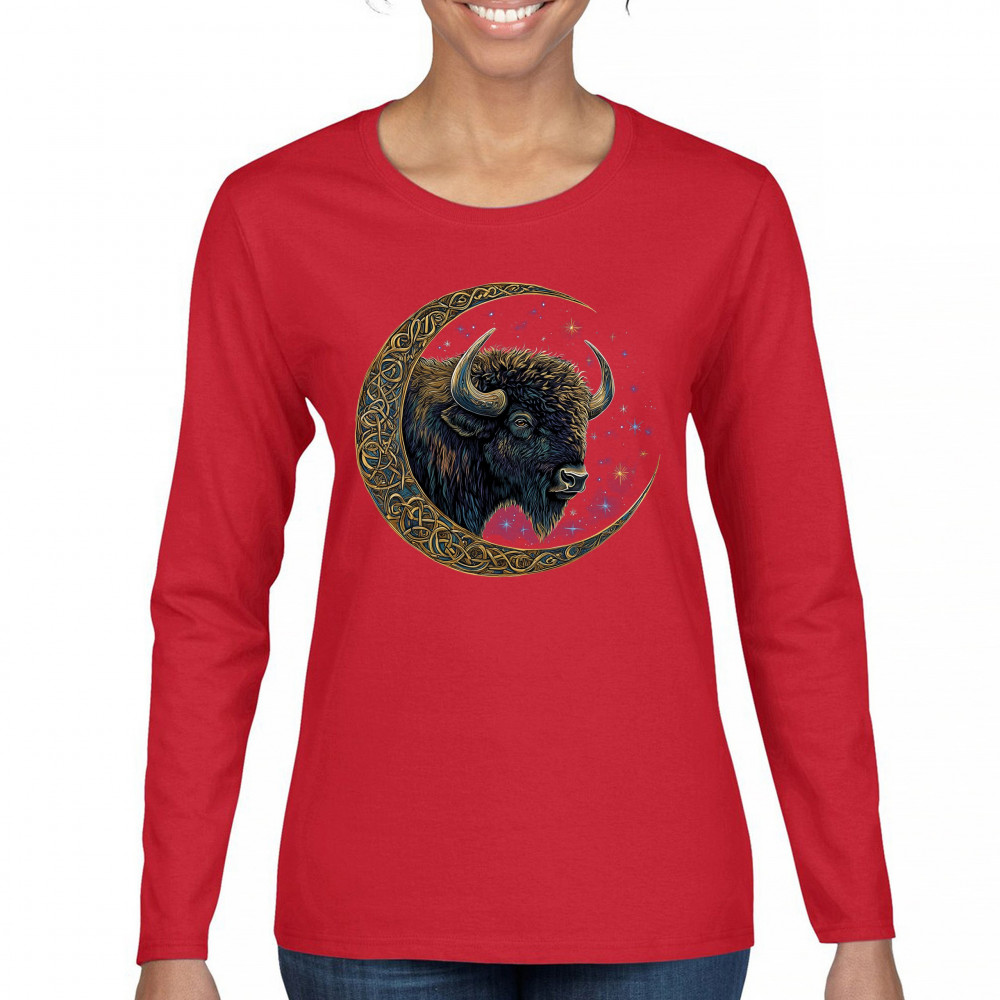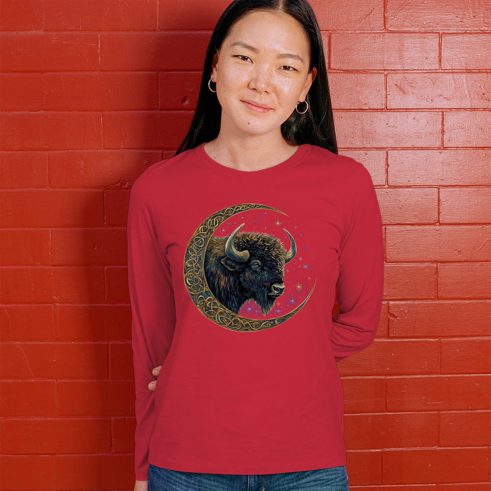 Mystical bison in Celtic moon—perfect for spiritual seekers, art fans, stargazers, and lovers of nature, tribal design, and cosmic energy.