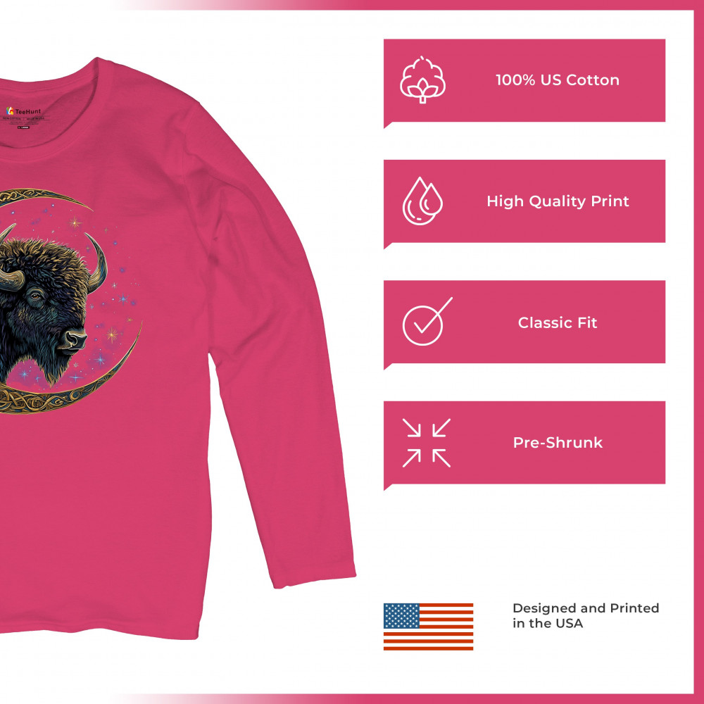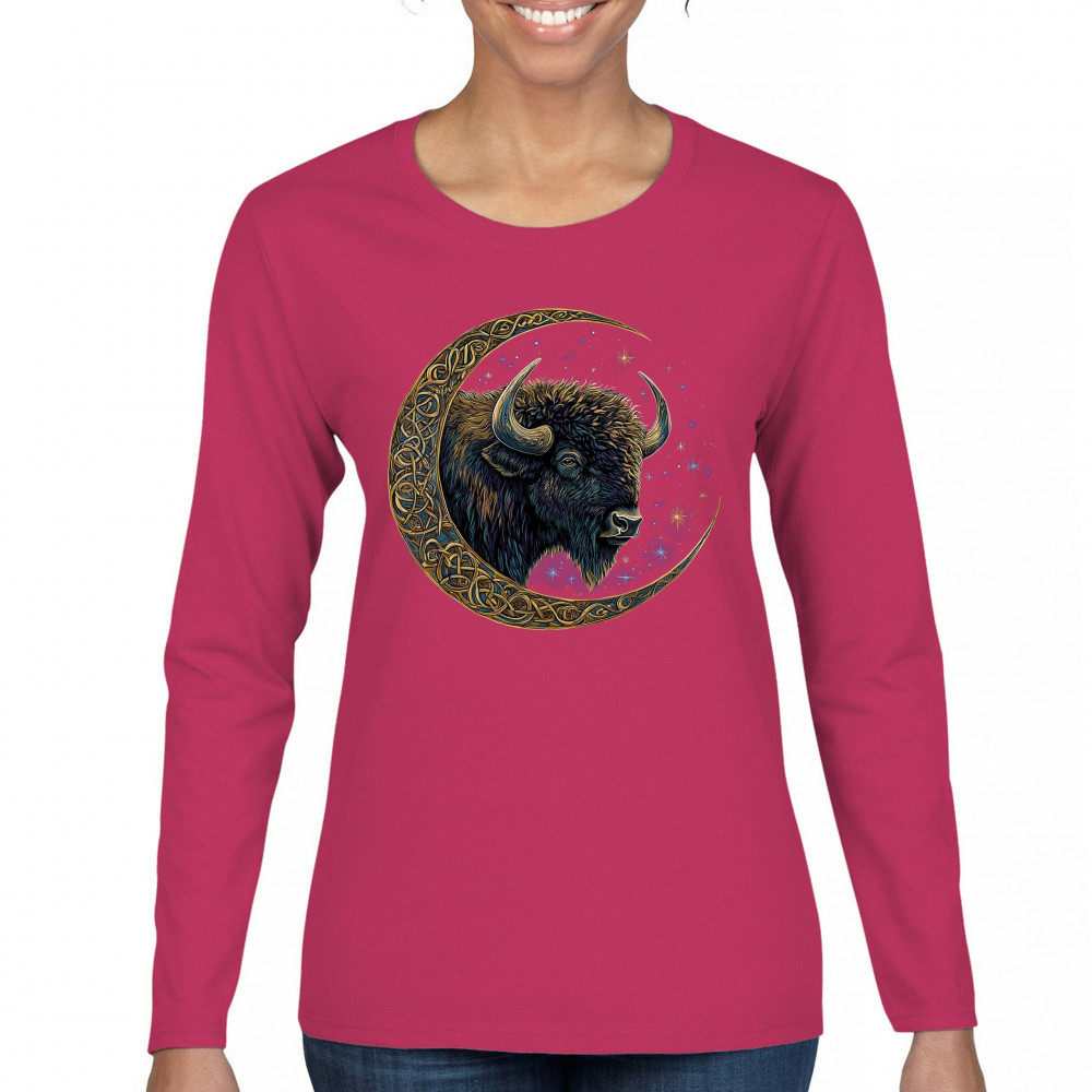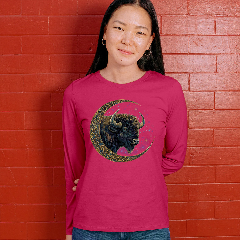 Mystical bison in Celtic moon—perfect for spiritual seekers, art fans, stargazers, and lovers of nature, tribal design, and cosmic energy.