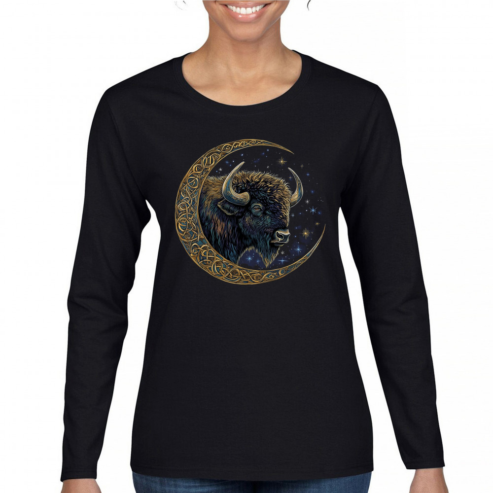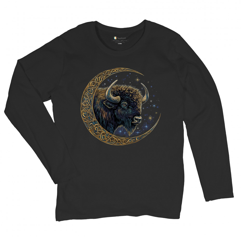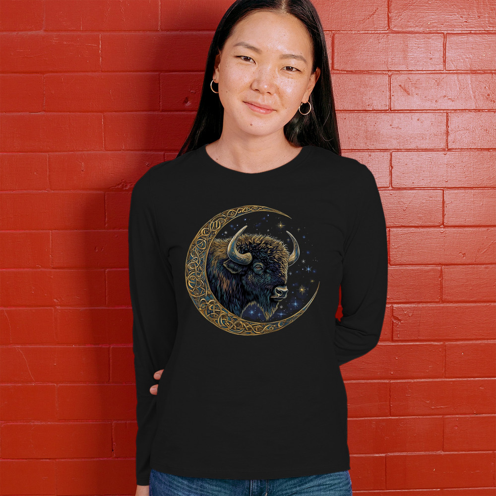 Mystical bison in Celtic moon—perfect for spiritual seekers, art fans, stargazers, and lovers of nature, tribal design, and cosmic energy.