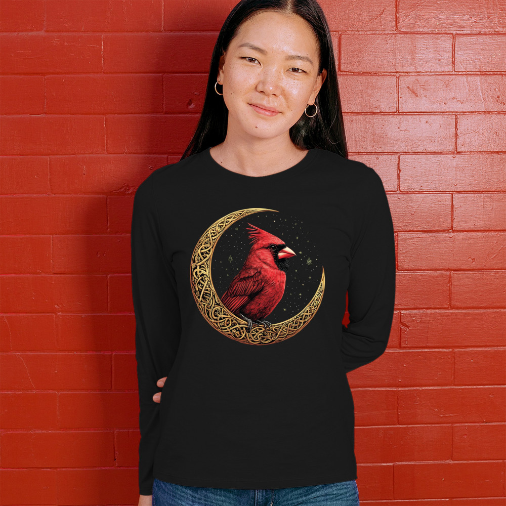 Mystical cardinal with Celtic moon and stars—perfect for nature lovers, spiritual souls, and those honoring love, loss, or remembrance.