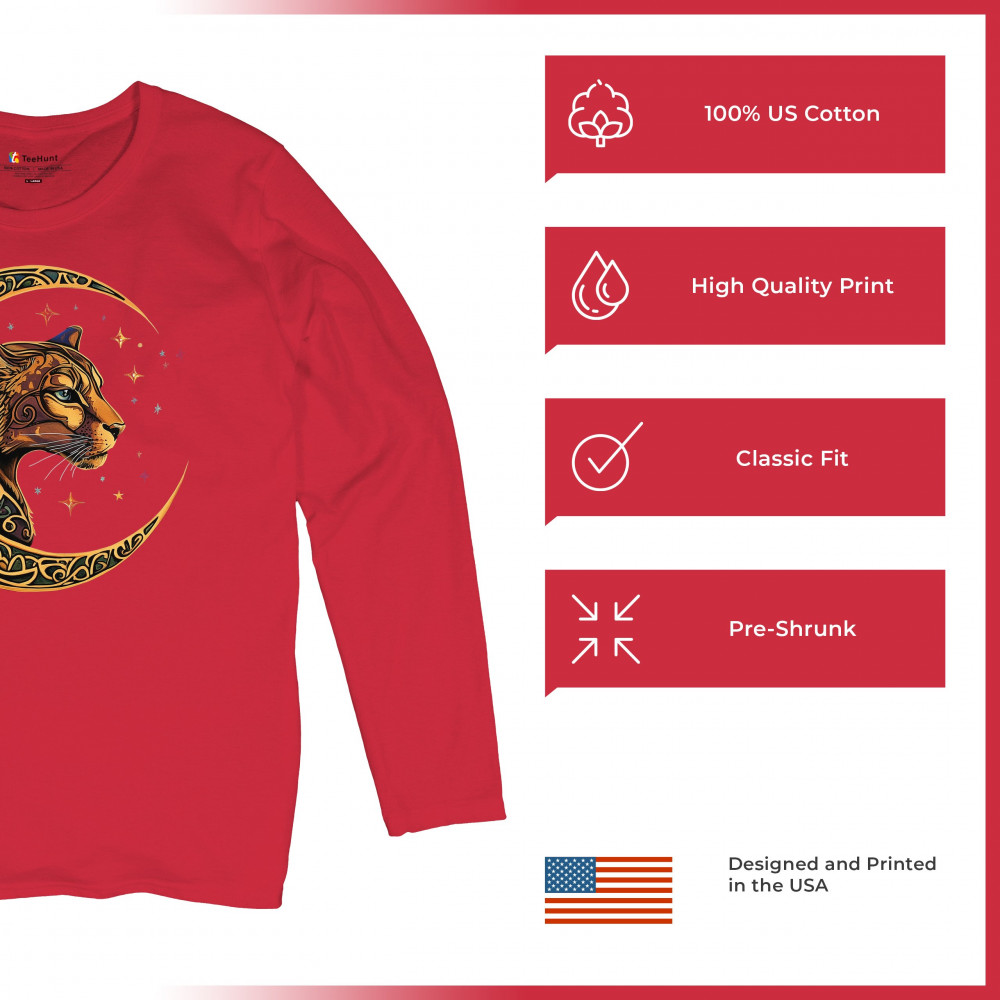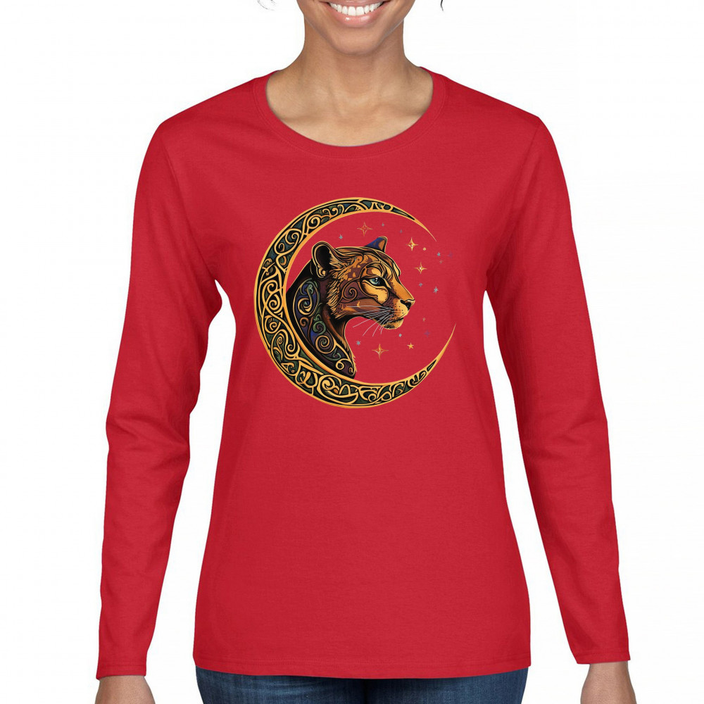 Mystical and elegant, this celestial leopard design merges wild animal strength with spiritual energy. Framed by a golden Celtic crescent moon and set against a starlit sky, it captures themes of nature, intuition, tribal symbolism, fantasy, and feminine power. Ideal for astrology fans, animal lovers, and seekers of cosmic connection.