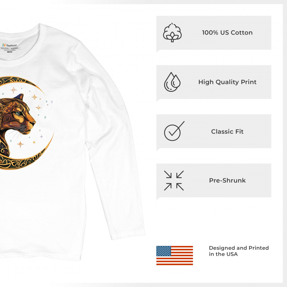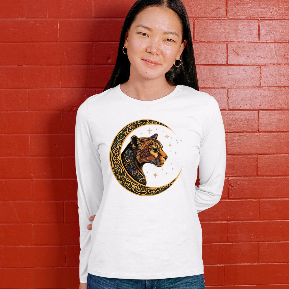Mystical and elegant, this celestial leopard design merges wild animal strength with spiritual energy. Framed by a golden Celtic crescent moon and set against a starlit sky, it captures themes of nature, intuition, tribal symbolism, fantasy, and feminine power. Ideal for astrology fans, animal lovers, and seekers of cosmic connection.