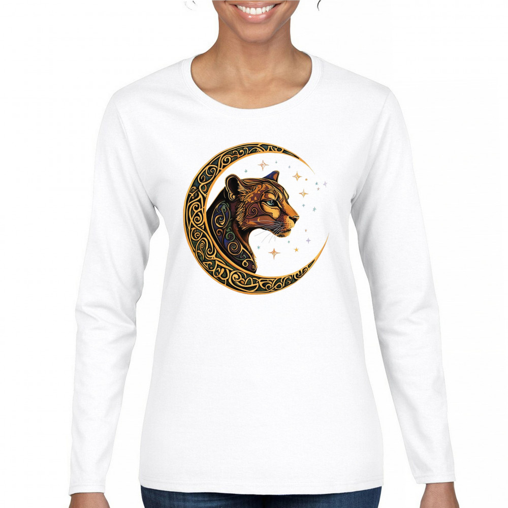 Leopard in Celtic moon with stars—mystical design for fantasy art fans, astrology lovers, and spiritual souls drawn to wild cosmic energy.