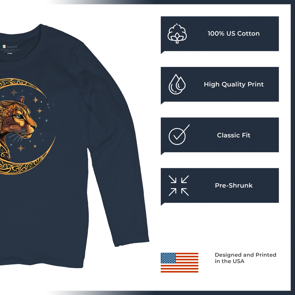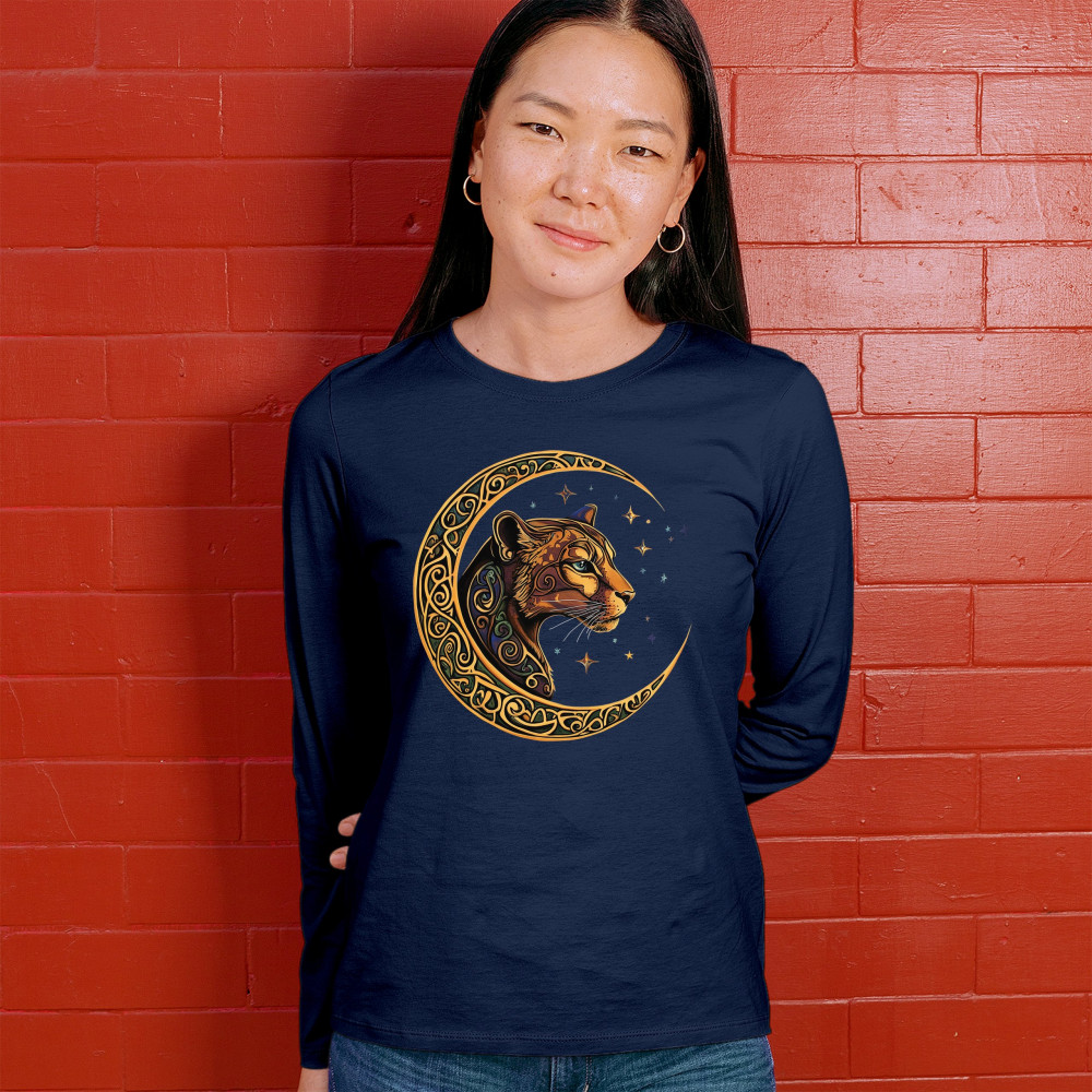 Mystical and elegant, this celestial leopard design merges wild animal strength with spiritual energy. Framed by a golden Celtic crescent moon and set against a starlit sky, it captures themes of nature, intuition, tribal symbolism, fantasy, and feminine power. Ideal for astrology fans, animal lovers, and seekers of cosmic connection.