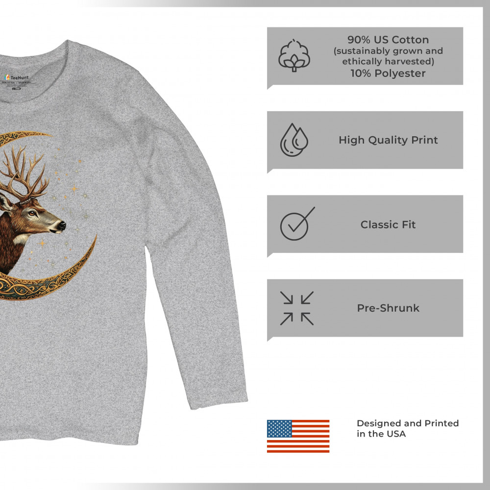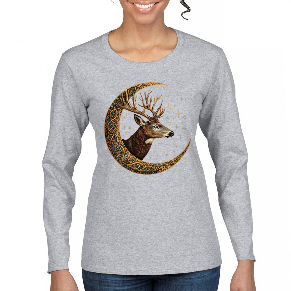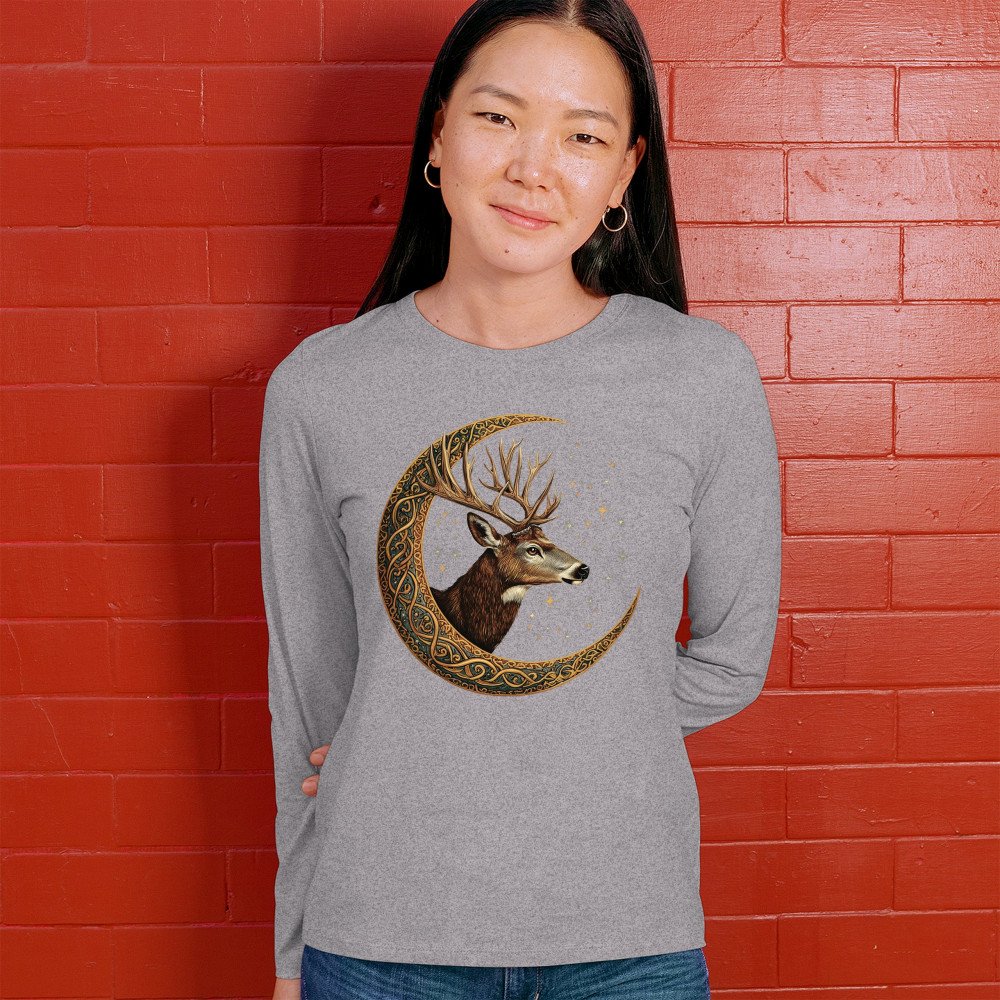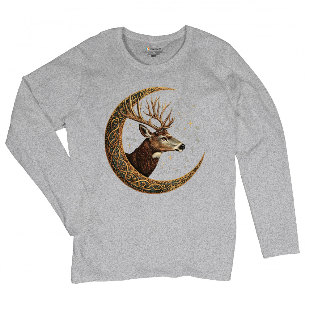 Majestic deer in Celtic moon with stars—symbol of protection, nature, and cosmic wisdom. A mystical gift for hunters, druids, and forest lovers.