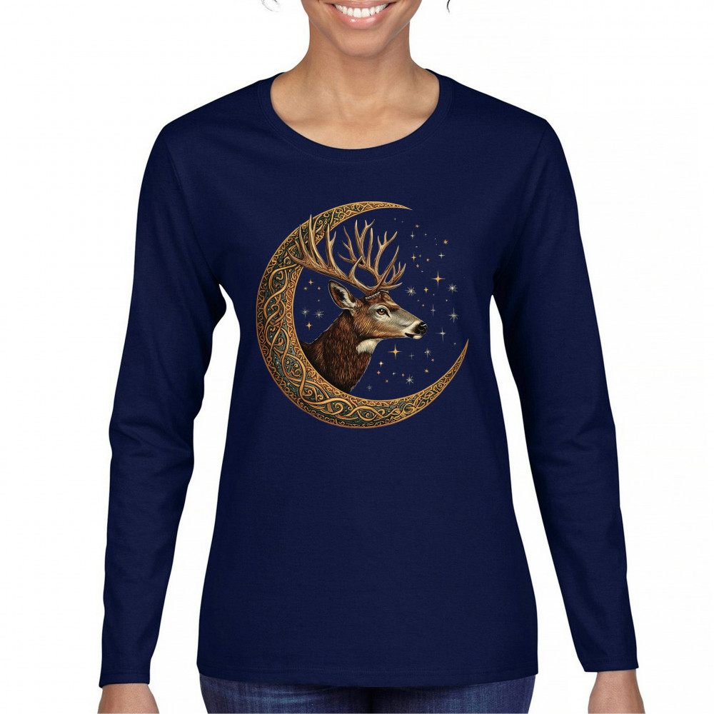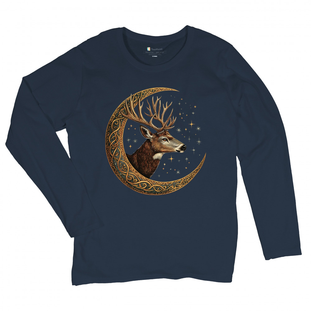 Majestic deer in Celtic moon with stars—symbol of protection, nature, and cosmic wisdom. A mystical gift for hunters, druids, and forest lovers.