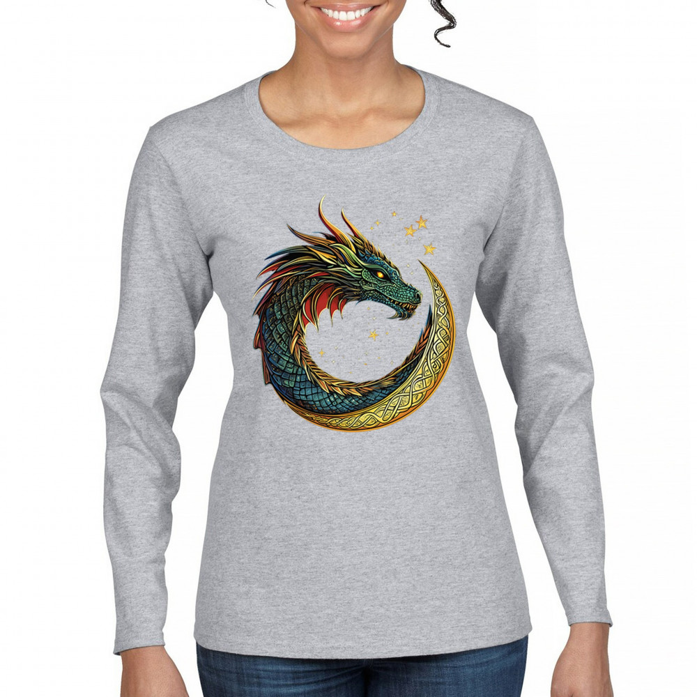 Unleash the spirit of transformation with this fierce dragon coiled inside a golden Celtic crescent moon. Its radiant scales and glowing eyes come to life against a starry, mystical sky. A symbol of fire energy, wisdom, and primal strength—perfect for gamers, fantasy enthusiasts, spiritual seekers, and legend lovers.