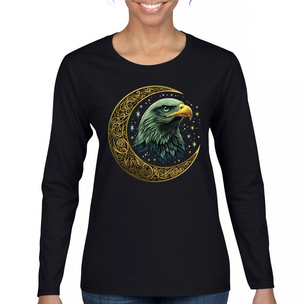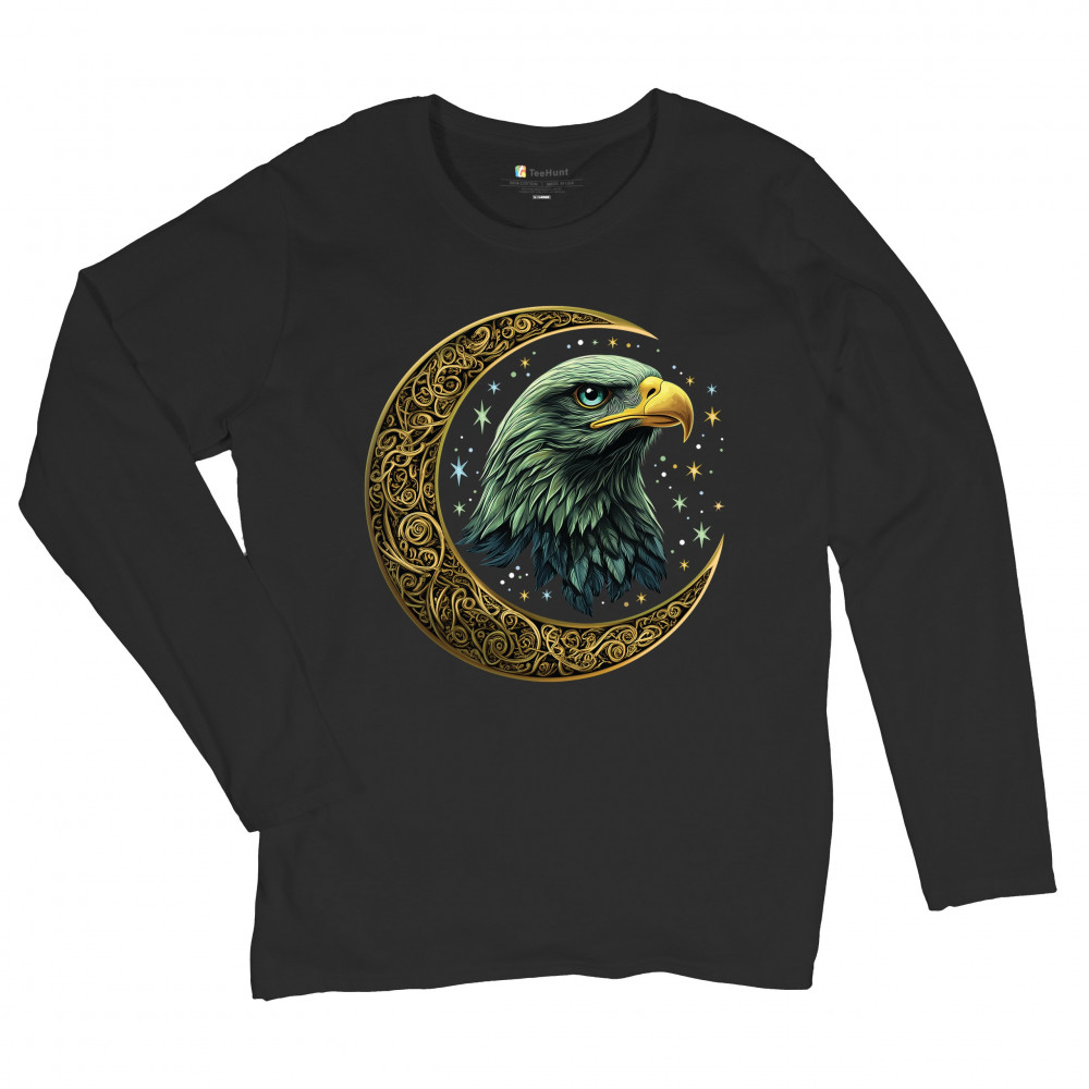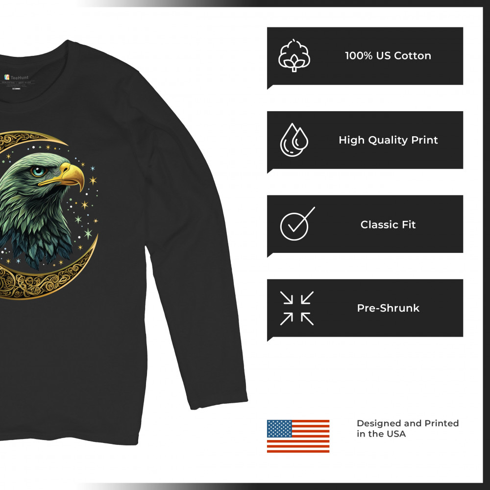Majestic eagle in golden Celtic moon with stars—symbol of strength, vision, and freedom. Perfect for patriots, spiritual seekers, and nature lovers.