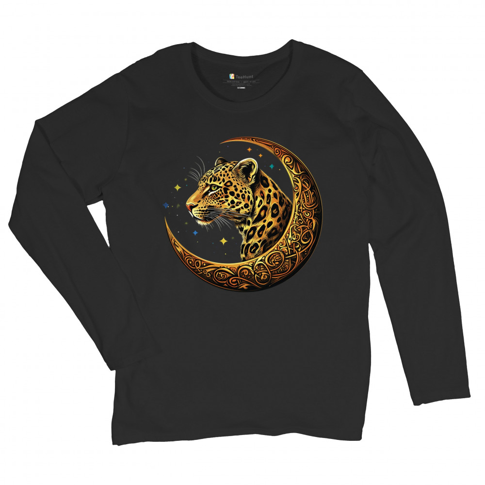 Unleash wild energy and spiritual symbolism with this bold leopard design set inside a golden Celtic crescent moon. A cosmic starry background amplifies its mystical vibe, symbolizing agility, independence, and awareness. Perfect for big cat lovers, jungle animal fans, and seekers of fantasy or tribal-inspired art.