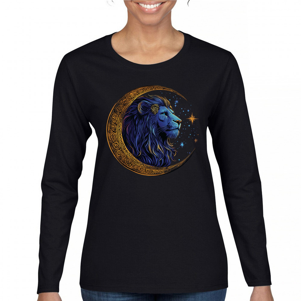 Majestic lion in Celtic crescent moon design—ideal for Leos, fantasy fans, and spiritual seekers drawn to strength and celestial symbolism.