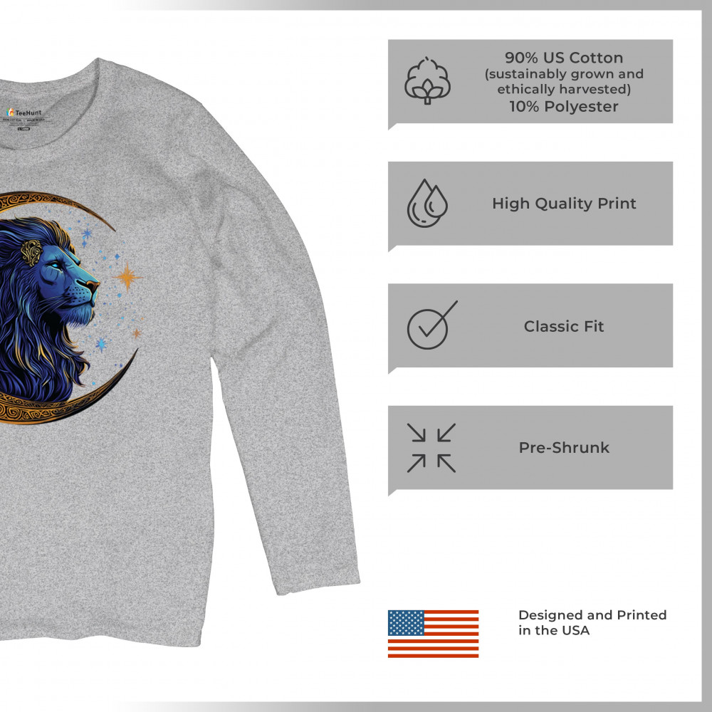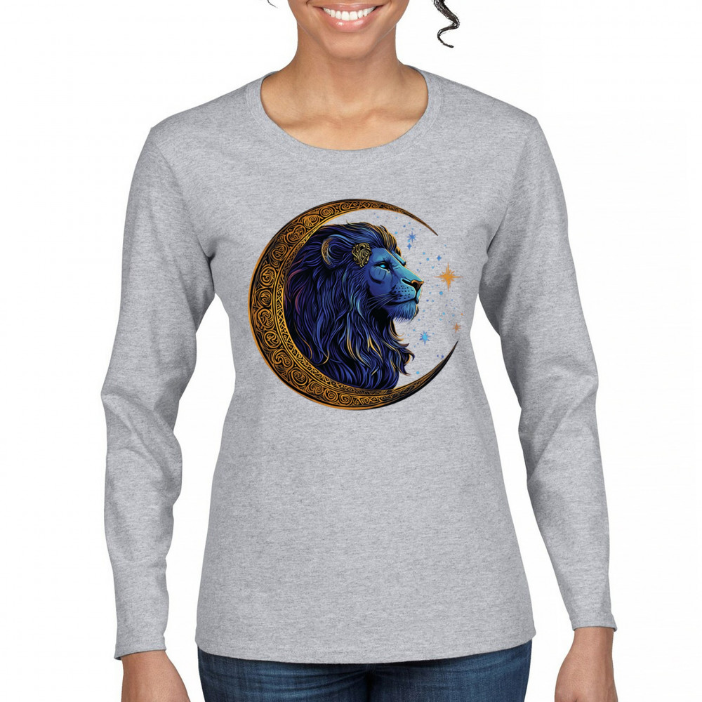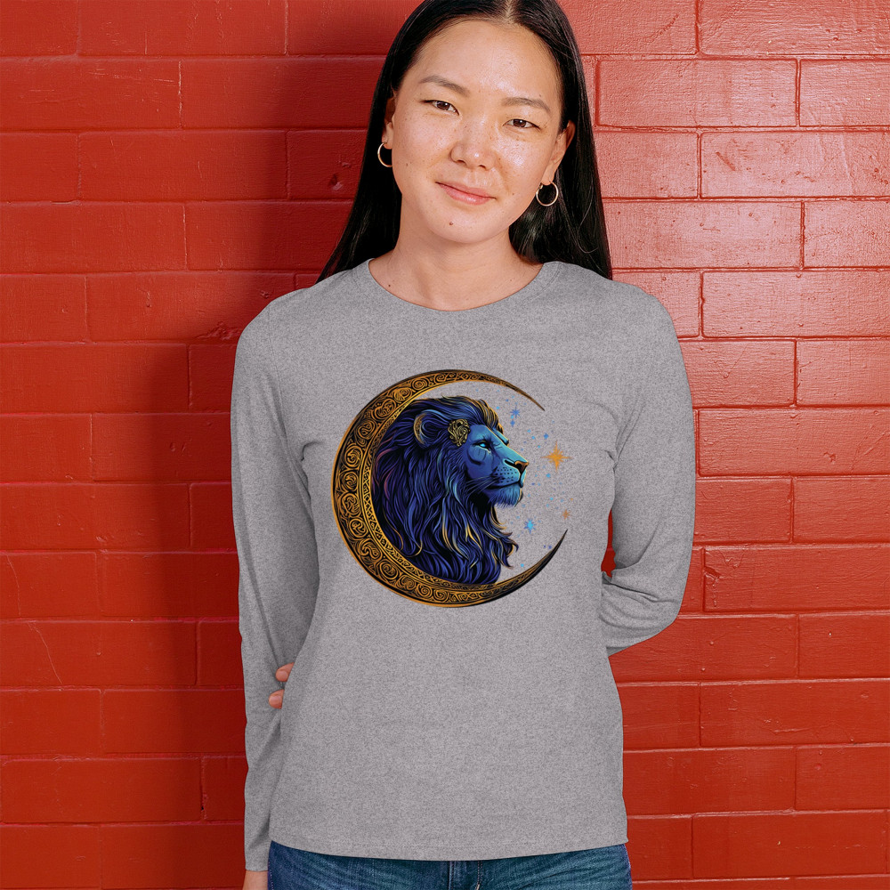 Majestic lion in Celtic crescent moon design—ideal for Leos, fantasy fans, and spiritual seekers drawn to strength and celestial symbolism.