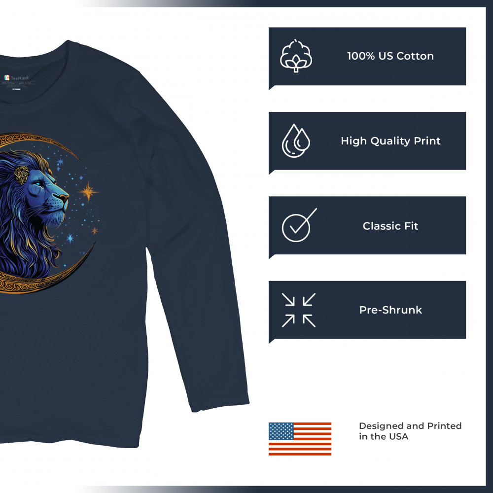 Majestic lion in Celtic crescent moon design—ideal for Leos, fantasy fans, and spiritual seekers drawn to strength and celestial symbolism.