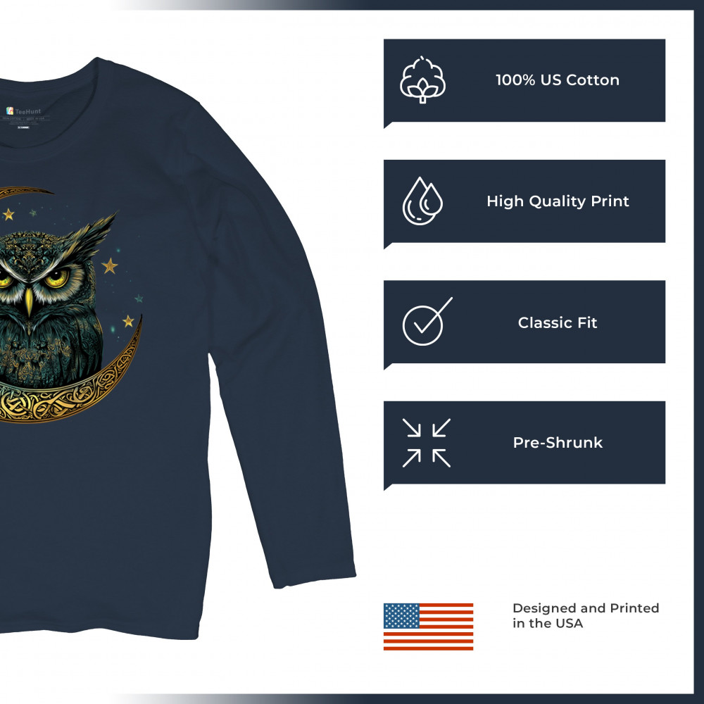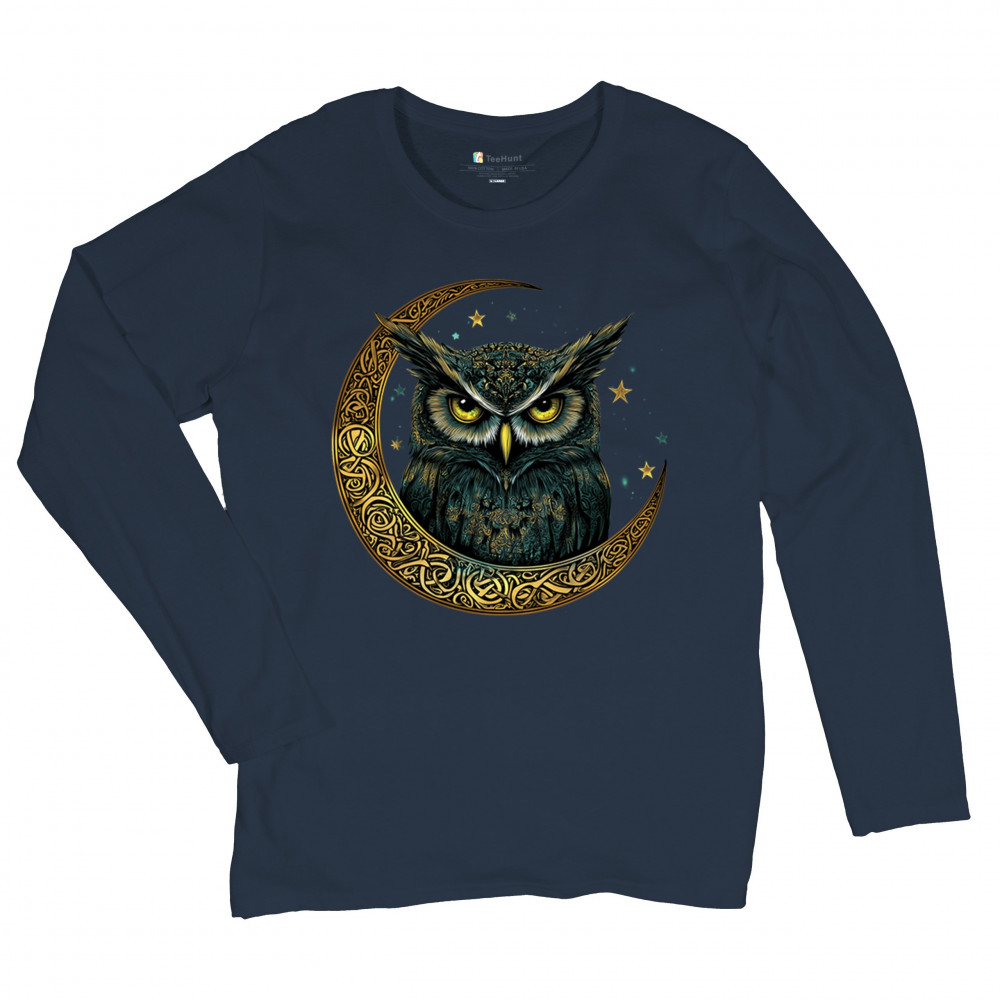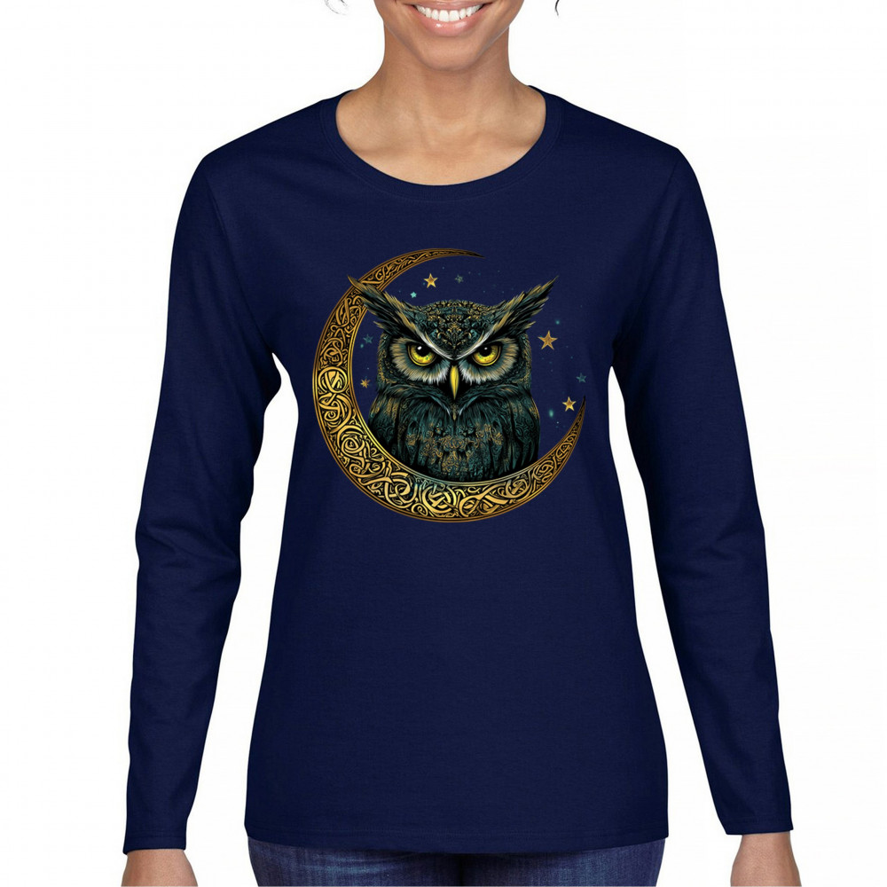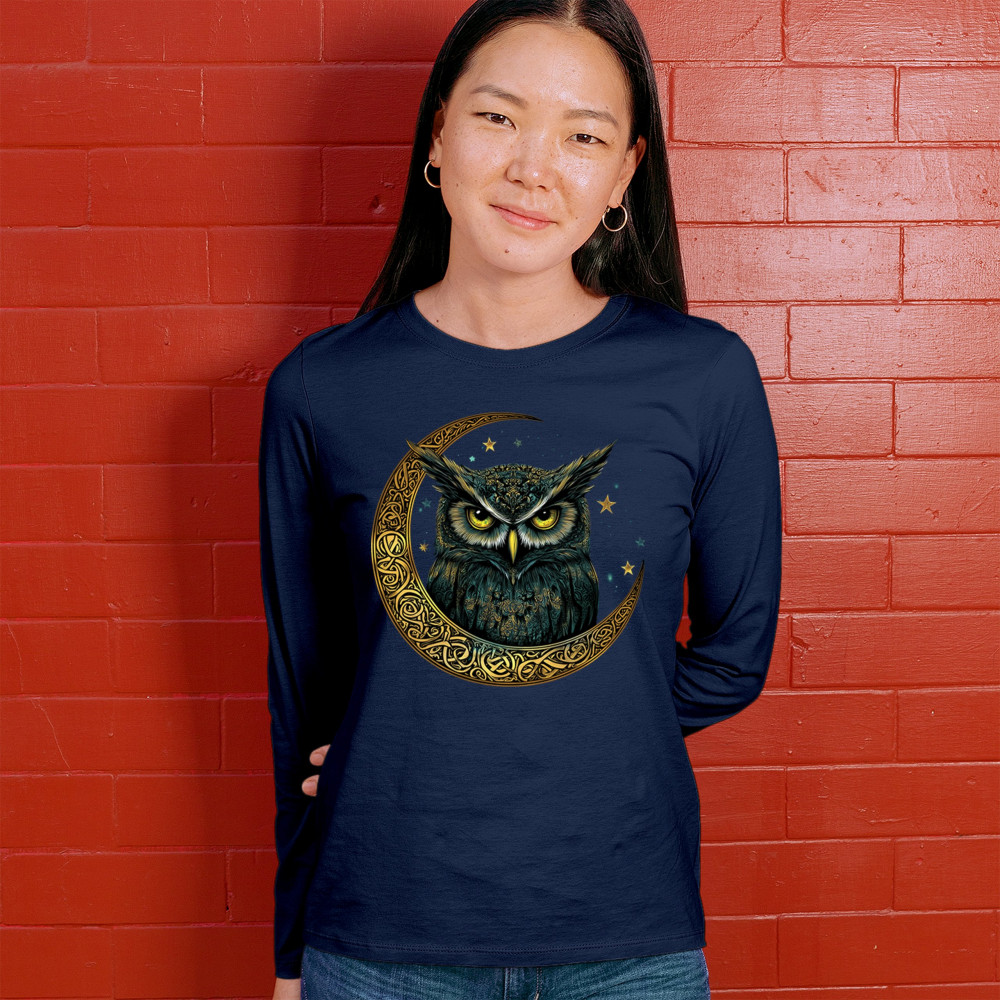 Cosmic owl in Celtic crescent moon—symbol of wisdom, night mystery, and spirit. Perfect for mystics, owl lovers, and fantasy fans.