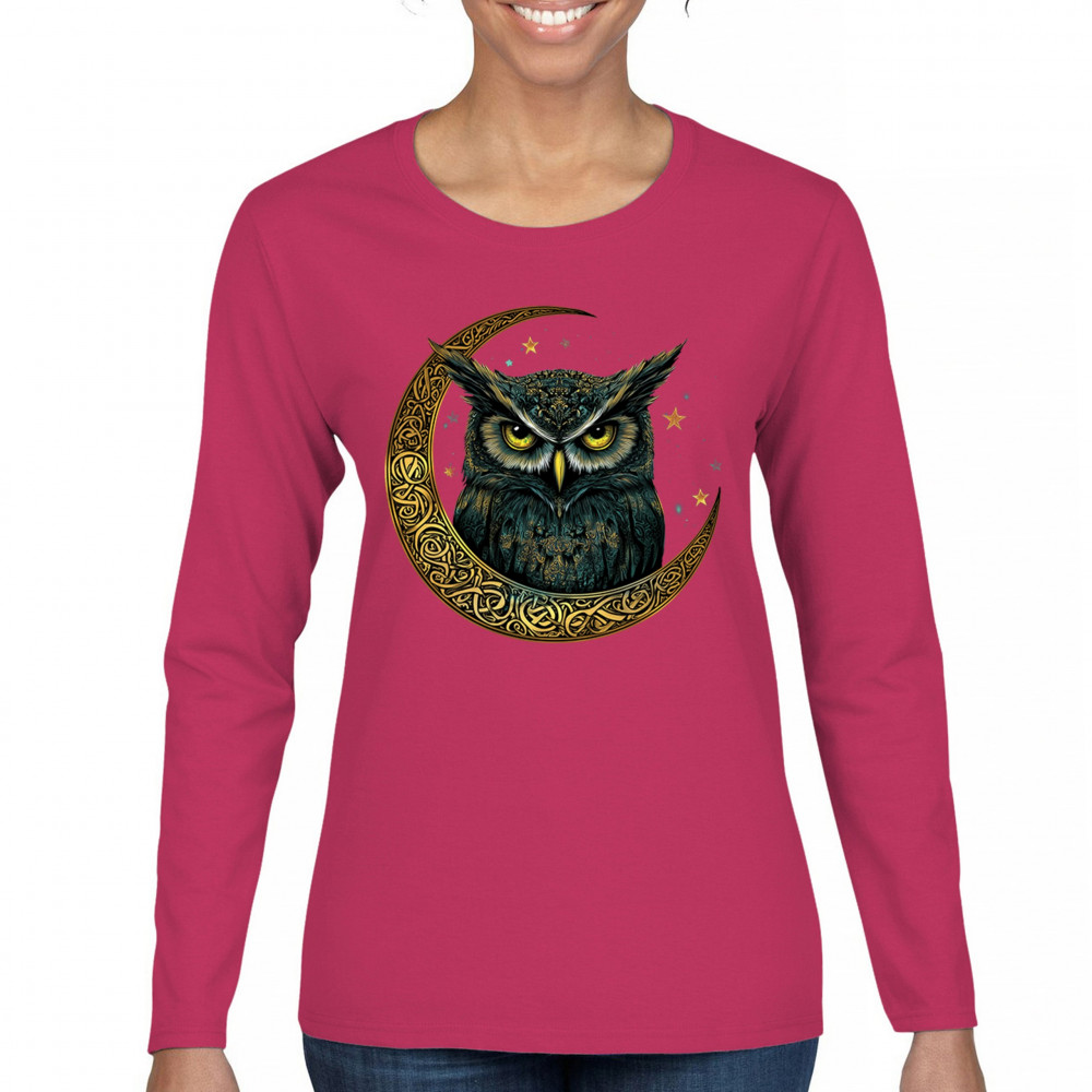 Cosmic owl in Celtic crescent moon—symbol of wisdom, night mystery, and spirit. Perfect for mystics, owl lovers, and fantasy fans.