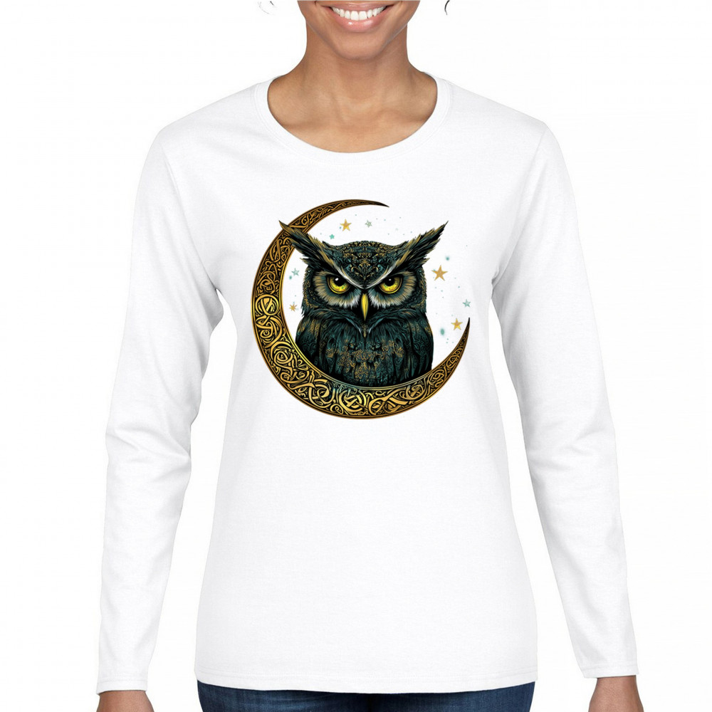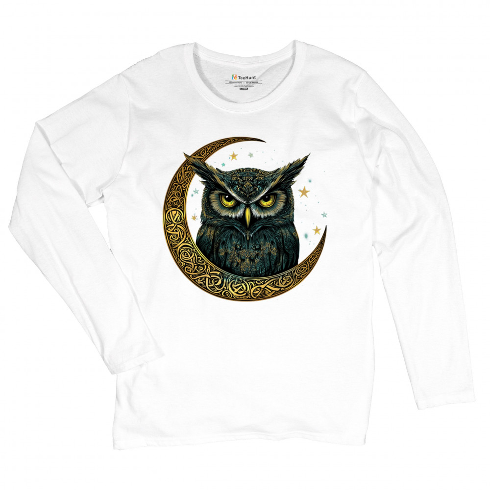 Cosmic owl in Celtic crescent moon—symbol of wisdom, night mystery, and spirit. Perfect for mystics, owl lovers, and fantasy fans.