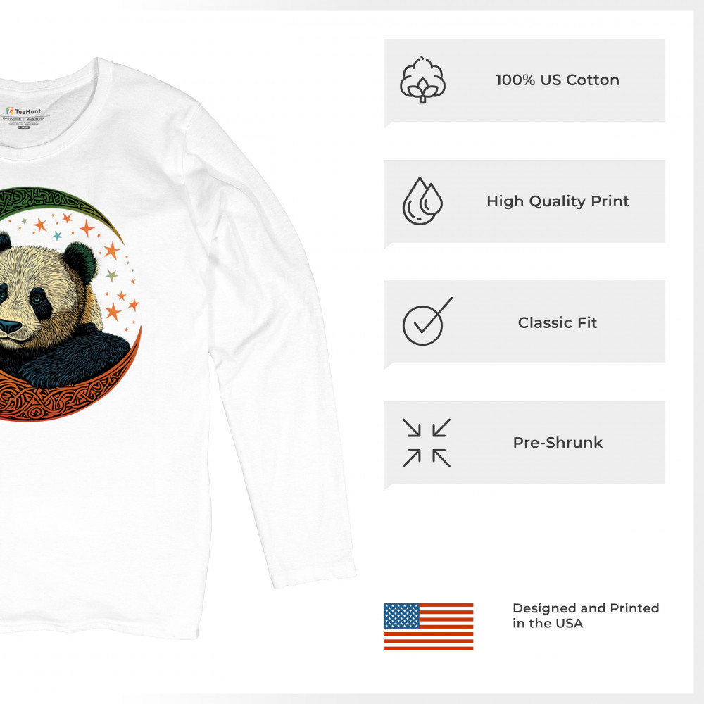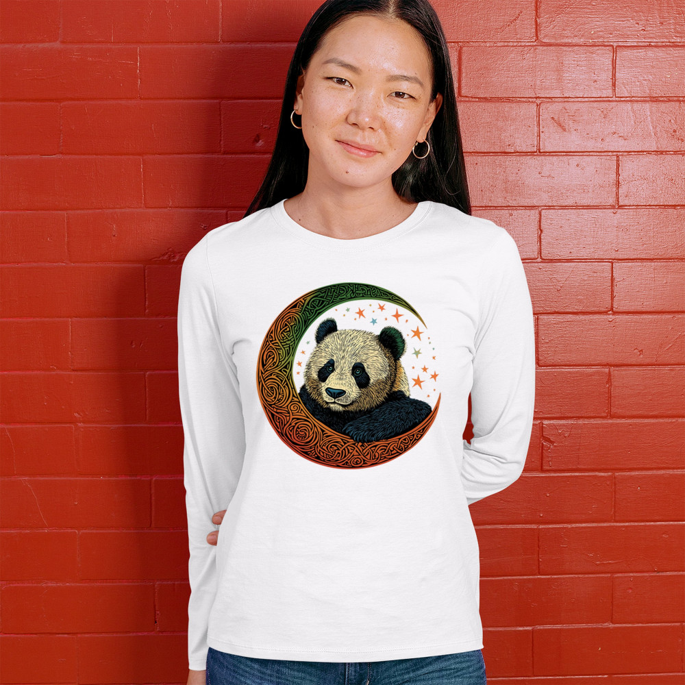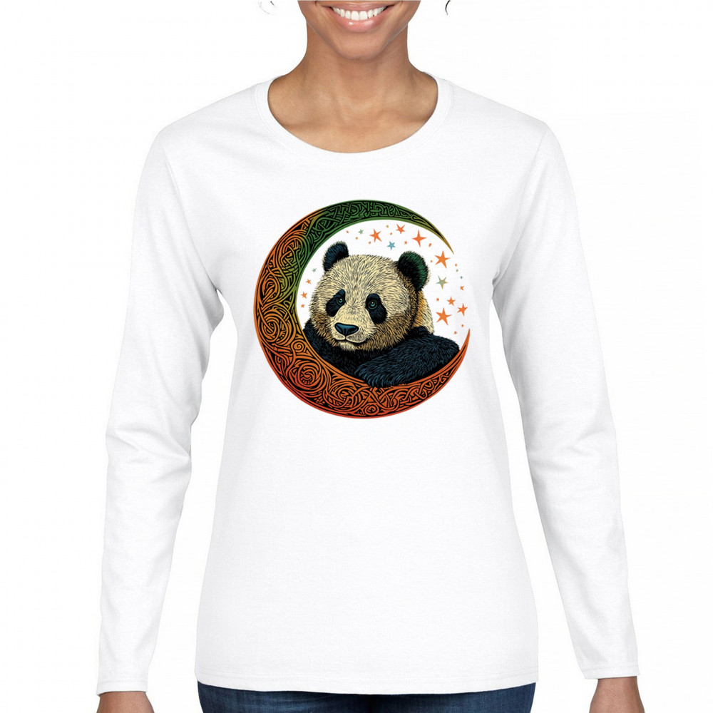 Peaceful panda in Celtic crescent moon design—symbol of harmony, balance, and spiritual calm for nature lovers, mystics, and gentle souls.
