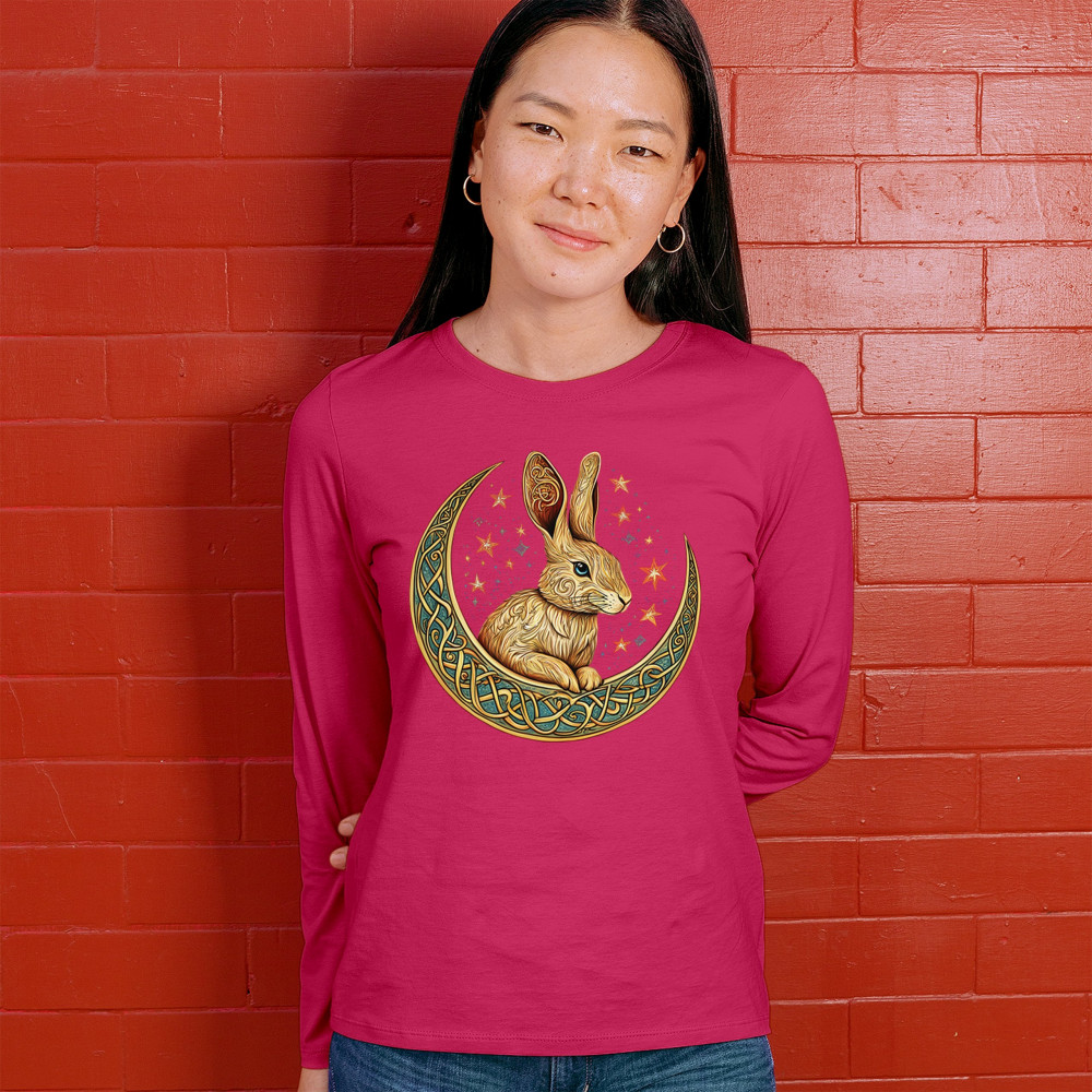 Mystical rabbit in Celtic moon—symbolizing intuition, rebirth, and spring energy. Ideal for fantasy lovers, mystics, and nature fans.