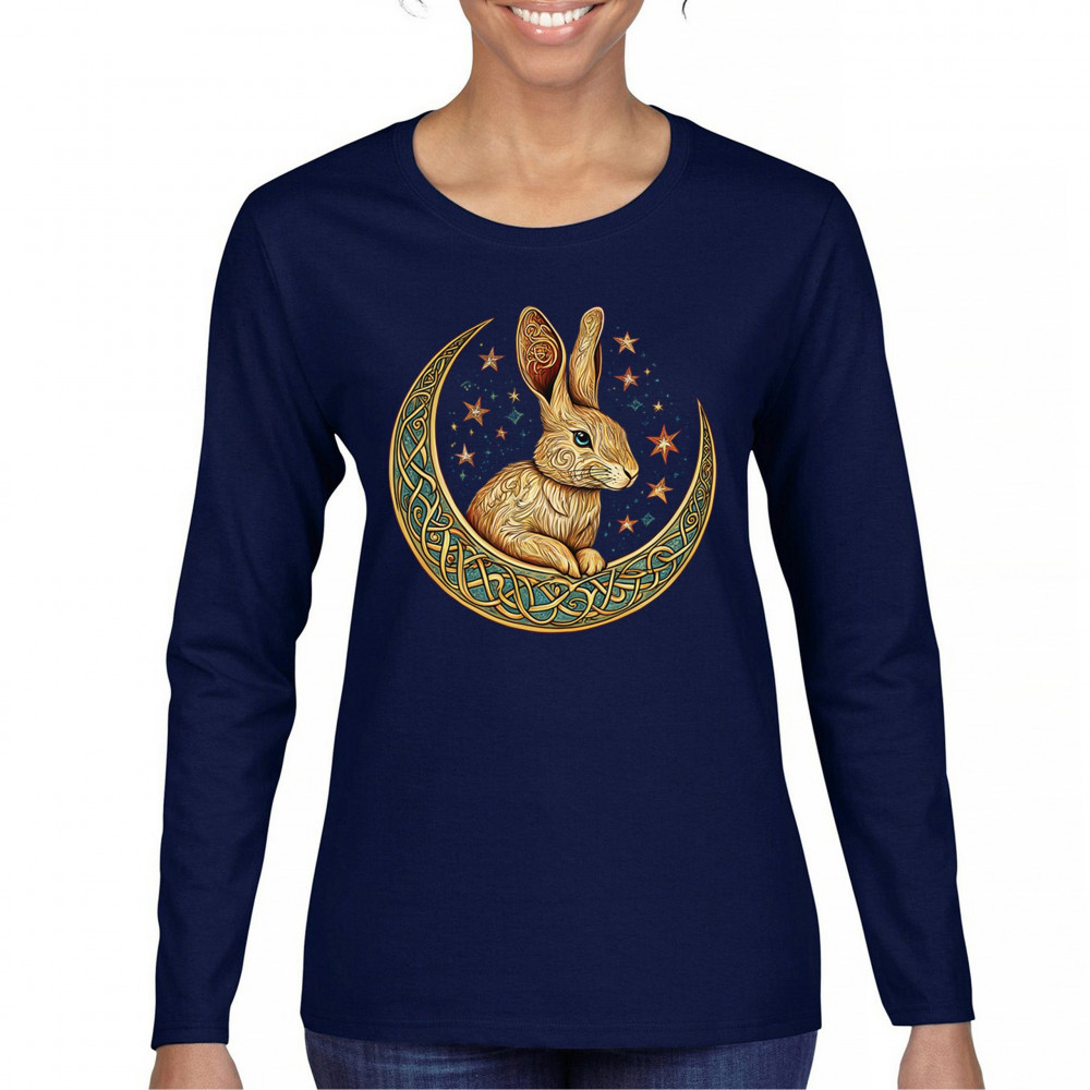 Mystical rabbit in Celtic moon—symbolizing intuition, rebirth, and spring energy. Ideal for fantasy lovers, mystics, and nature fans.