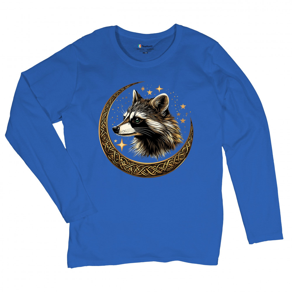 Cosmic raccoon design in Celtic moon. Symbol of adaptability, mystery, and spiritual intelligence. A perfect gift for wild and curious souls.