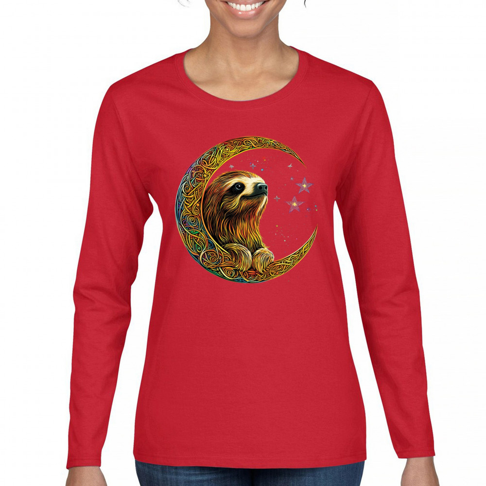 Celebrate peace and presence with this stunning sloth design cradled in a gold Celtic crescent moon. Surrounded by a vibrant starry sky, the image blends jungle whimsy with tribal patterns and mystical vibes. A perfect design for lovers of fantasy animals, mindfulness, and slow living. A beautiful tribute to spiritual stillness and cosmic calm.