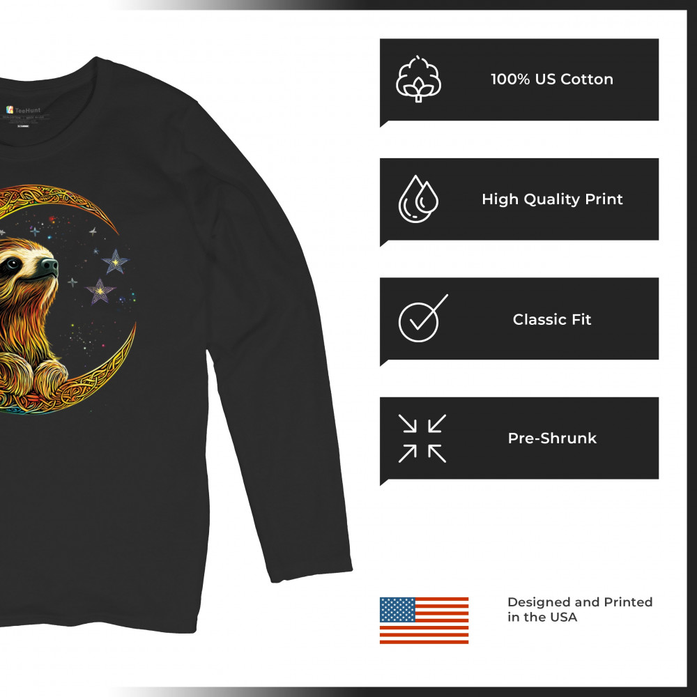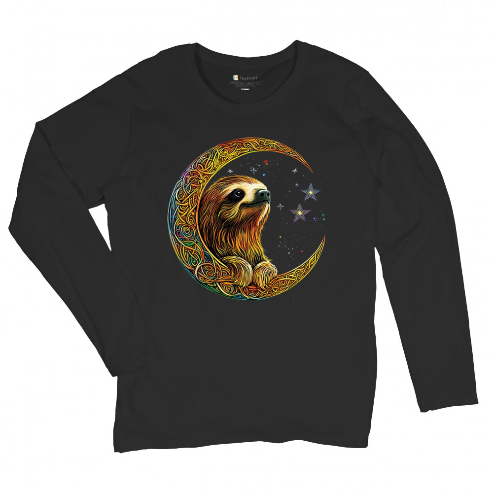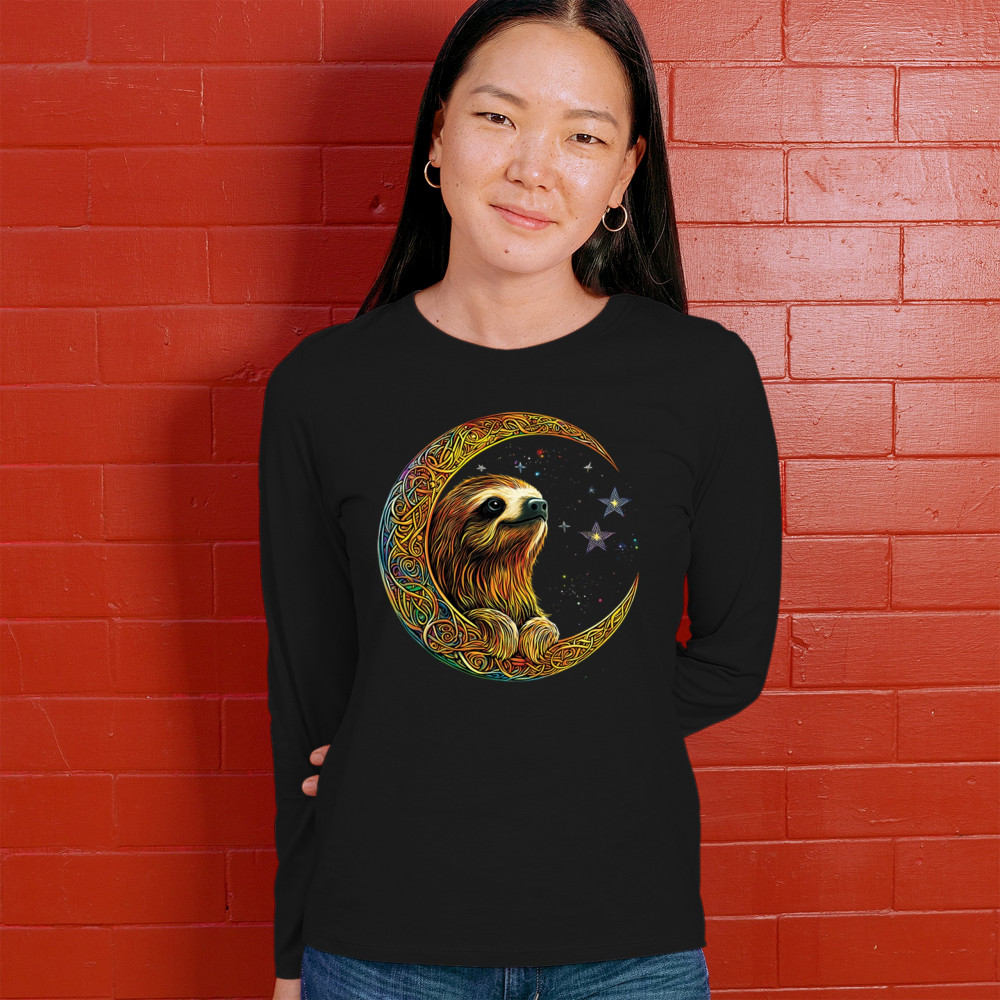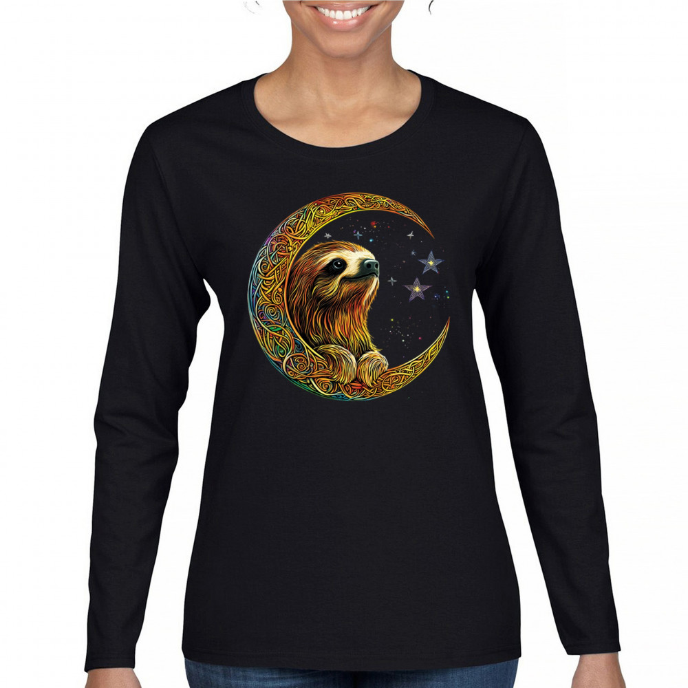 CELTIC MOON SLOTH women's long sleeve t-shirt mystic chill animal nature nordic black