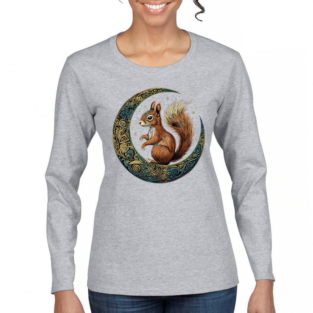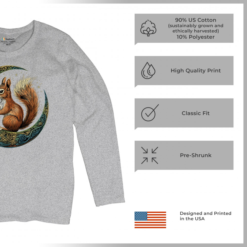 Celebrate agility, awareness, and forest wisdom with this magical red squirrel design. Nestled in a green-gold Celtic crescent moon and backed by a starry cosmic sky, this piece merges natural energy with tribal patterns and celestial wonder. A unique design for animal spirit believers, forest wanderers, and fantasy nature fans.